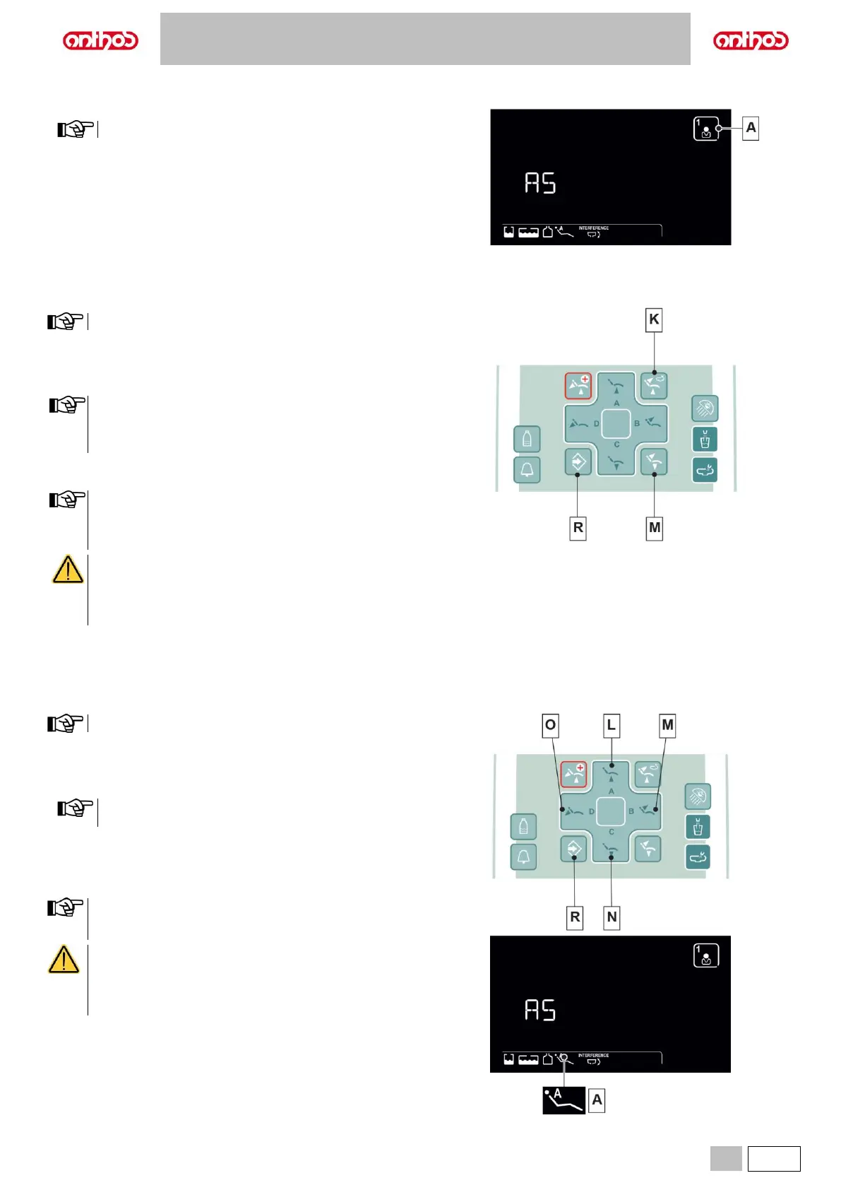 • Press the buttons "Reset Position" (patient entry/exit) (M) or "Rinse