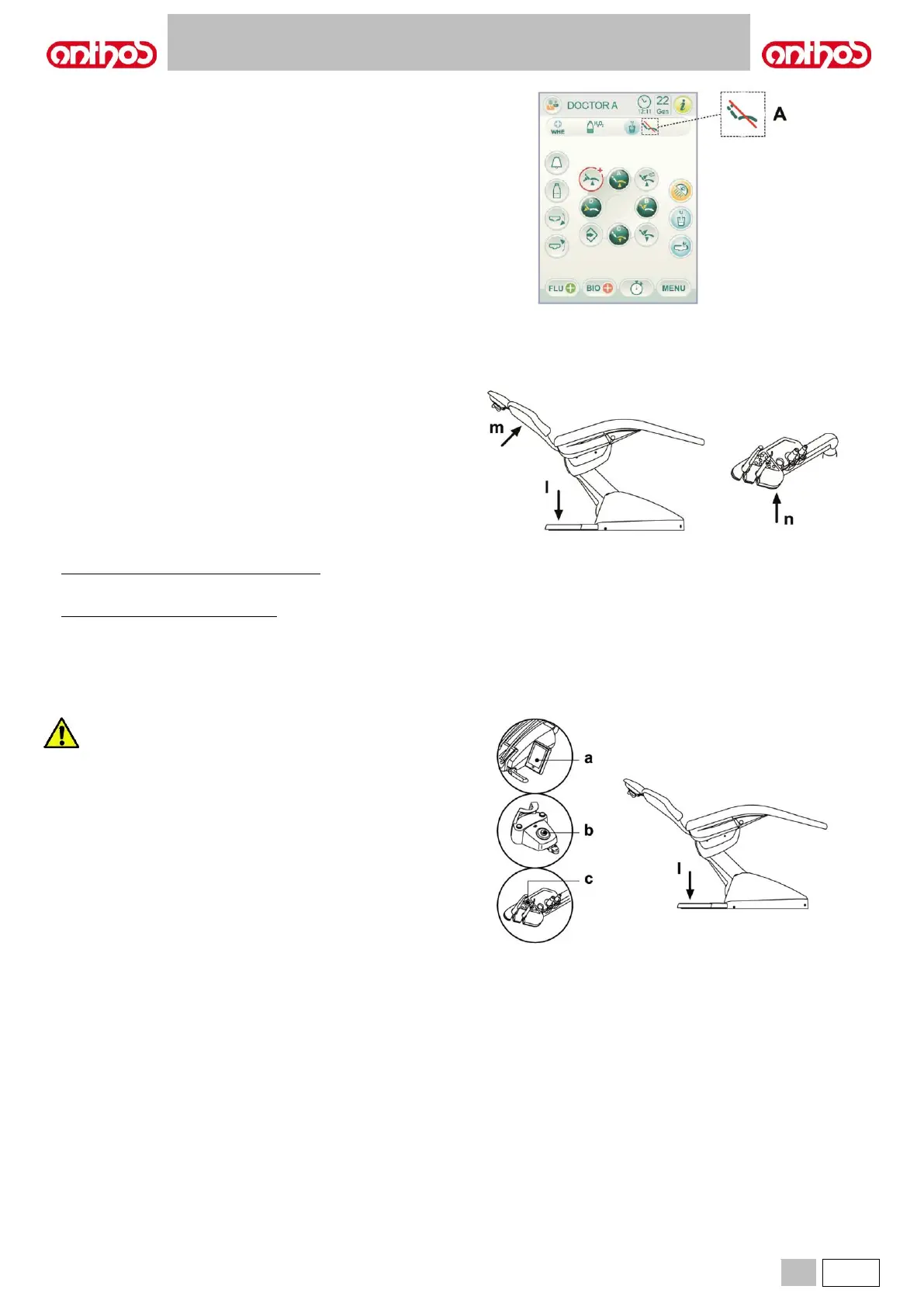 • Dental chair control buttons ( a ) or ( c ).