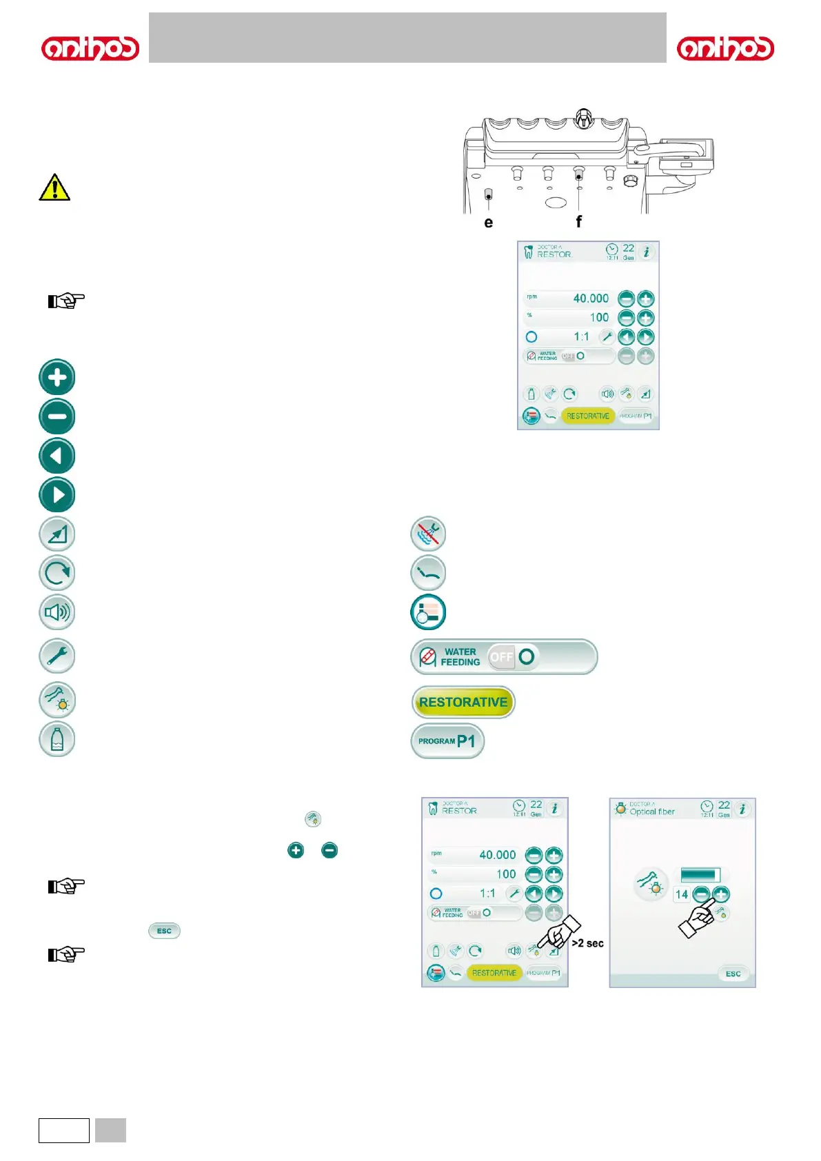 • To adjust fiber optic brightness, touch icon button (for at least 2