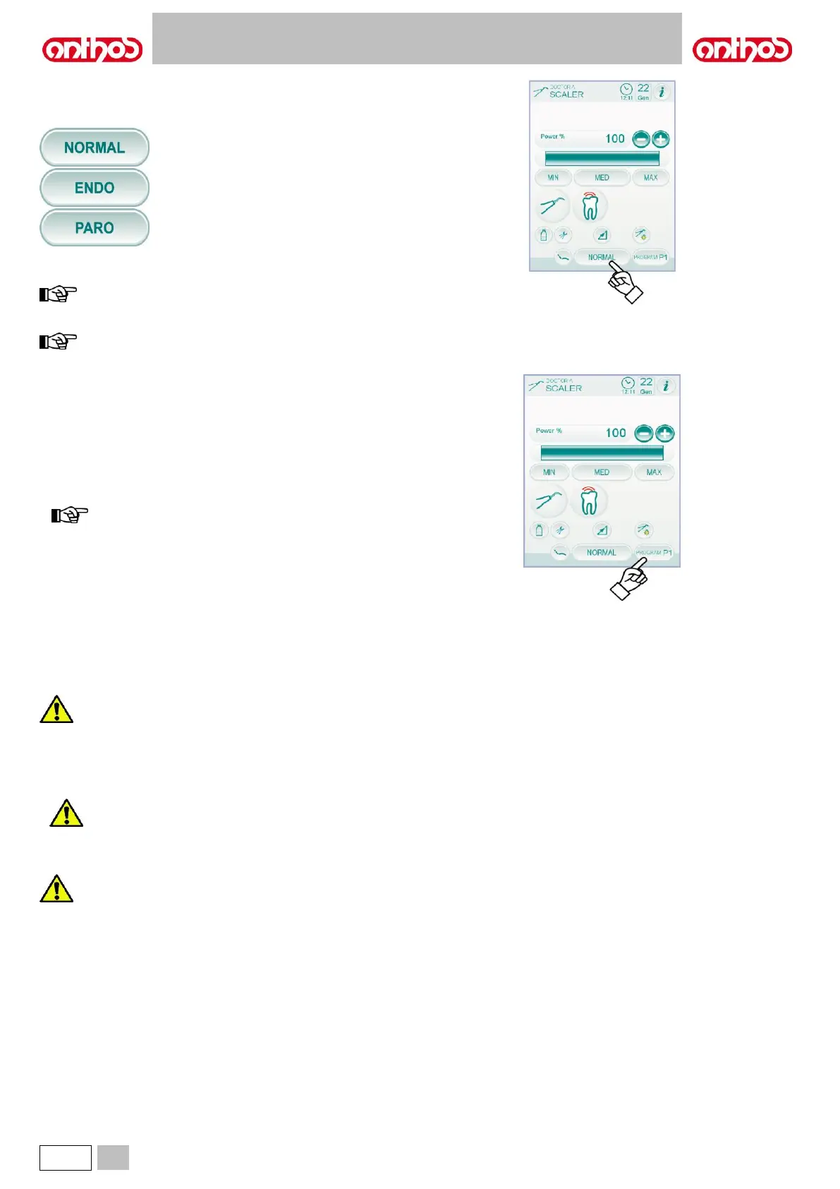 The scaler has 4 different working programmes, identified with P1, P2,
