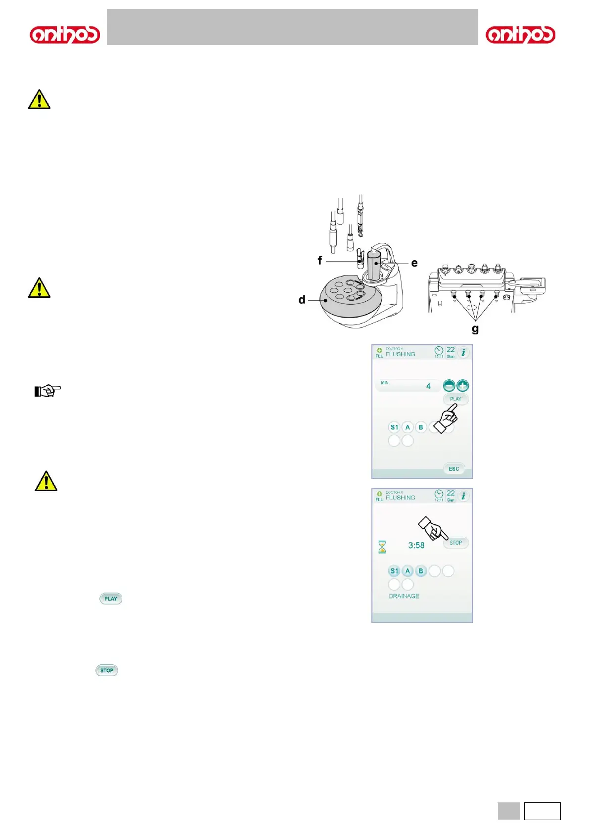 • Touch icon button on the TOUCH DISPLAY to start the flushing
