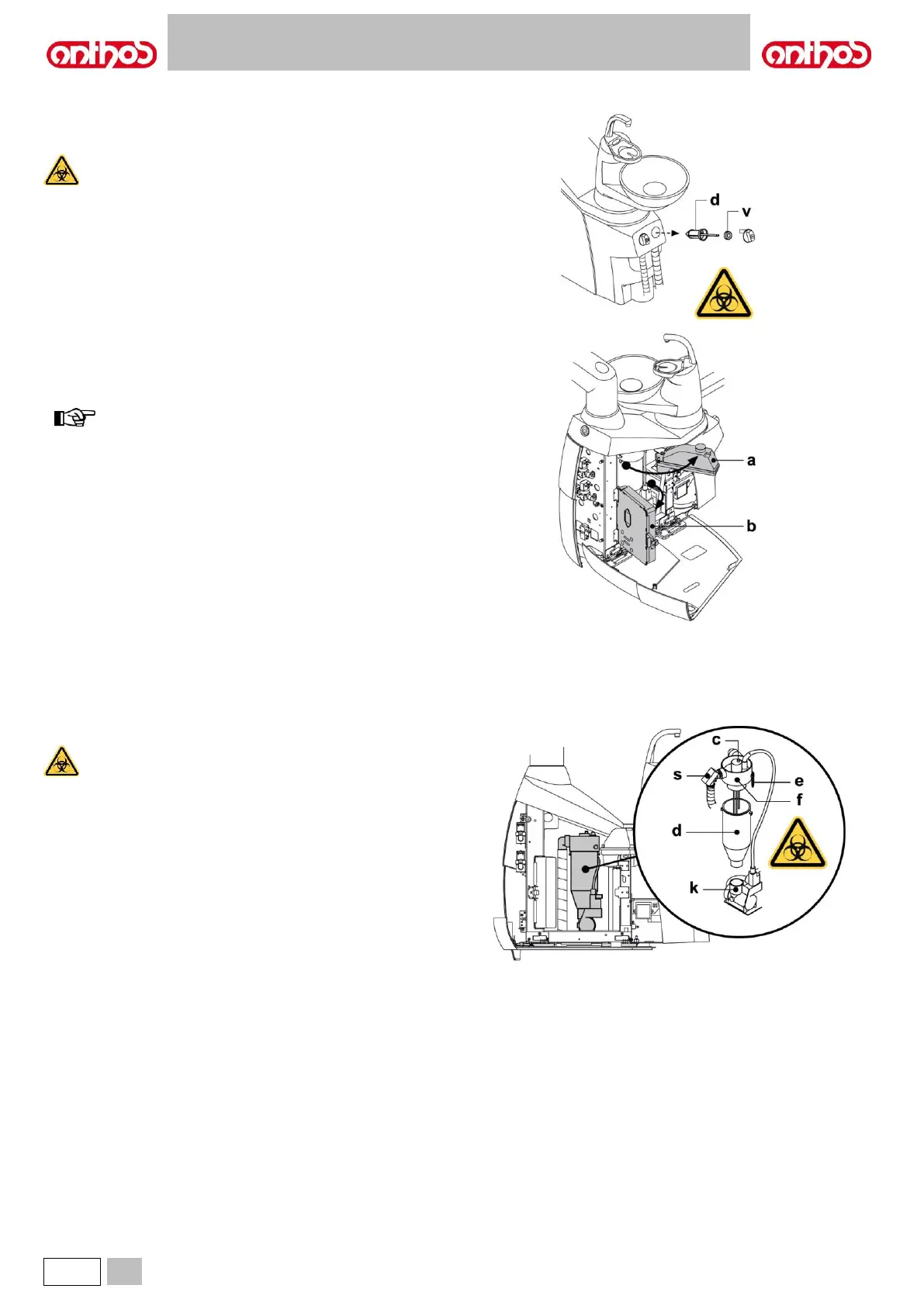 • After the cleaning operations, refit the container ( d ) after lubricating