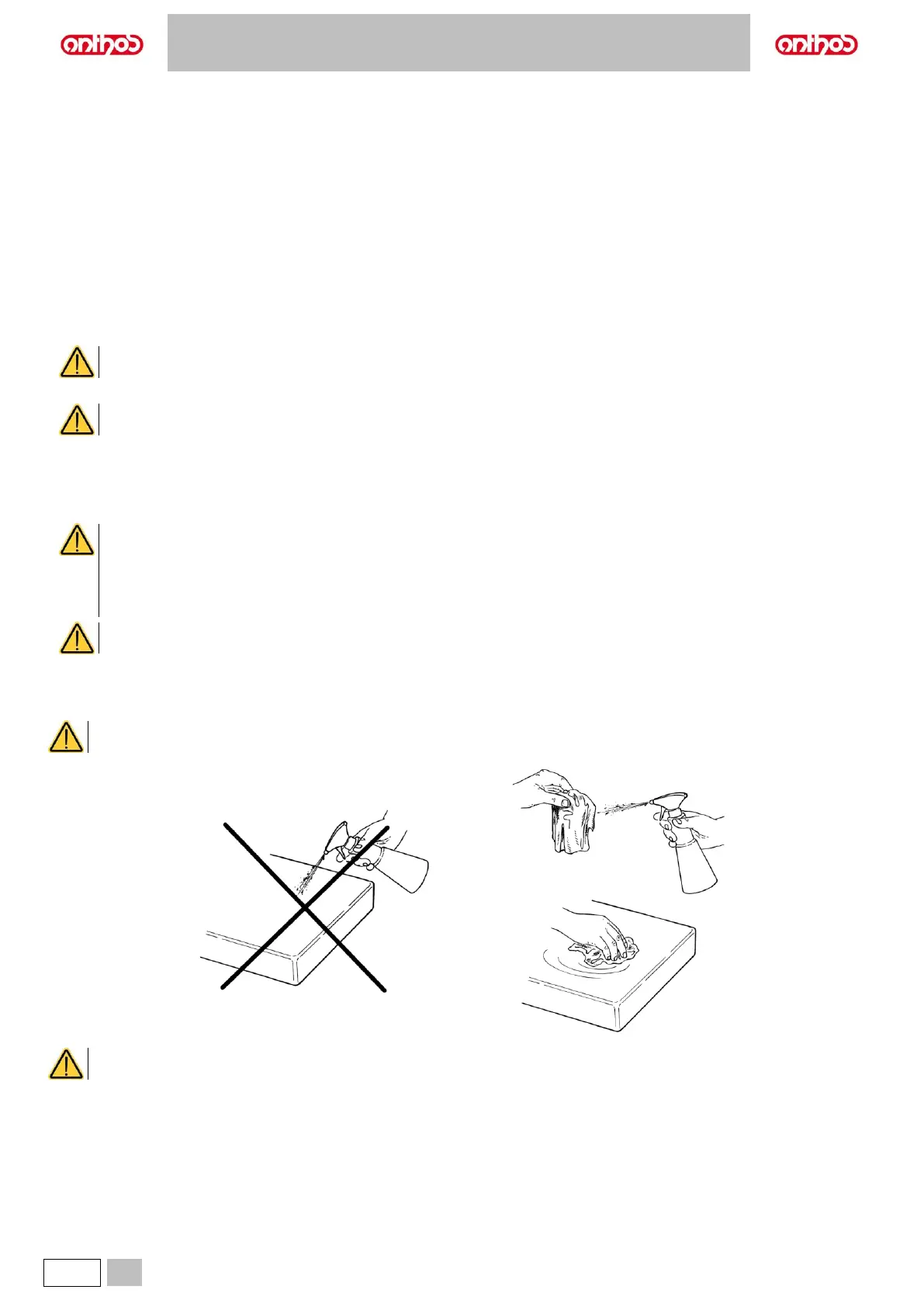 • Do not spray the selected product directly on the surfaces.