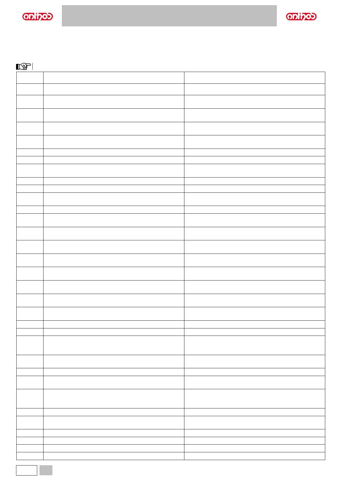 Error messages (Exxx) indicate situations that cannot be fixed by the user and require the intervention of the Technical Service.