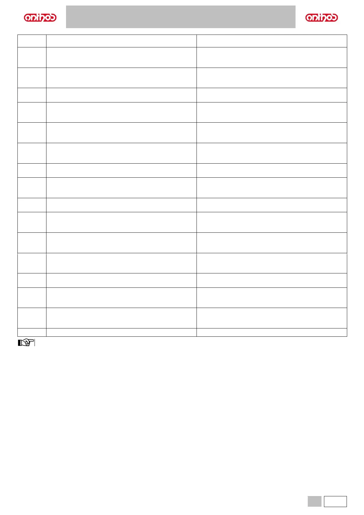 If the warning message is not included in the list, please contact the Technical Service department for further details.