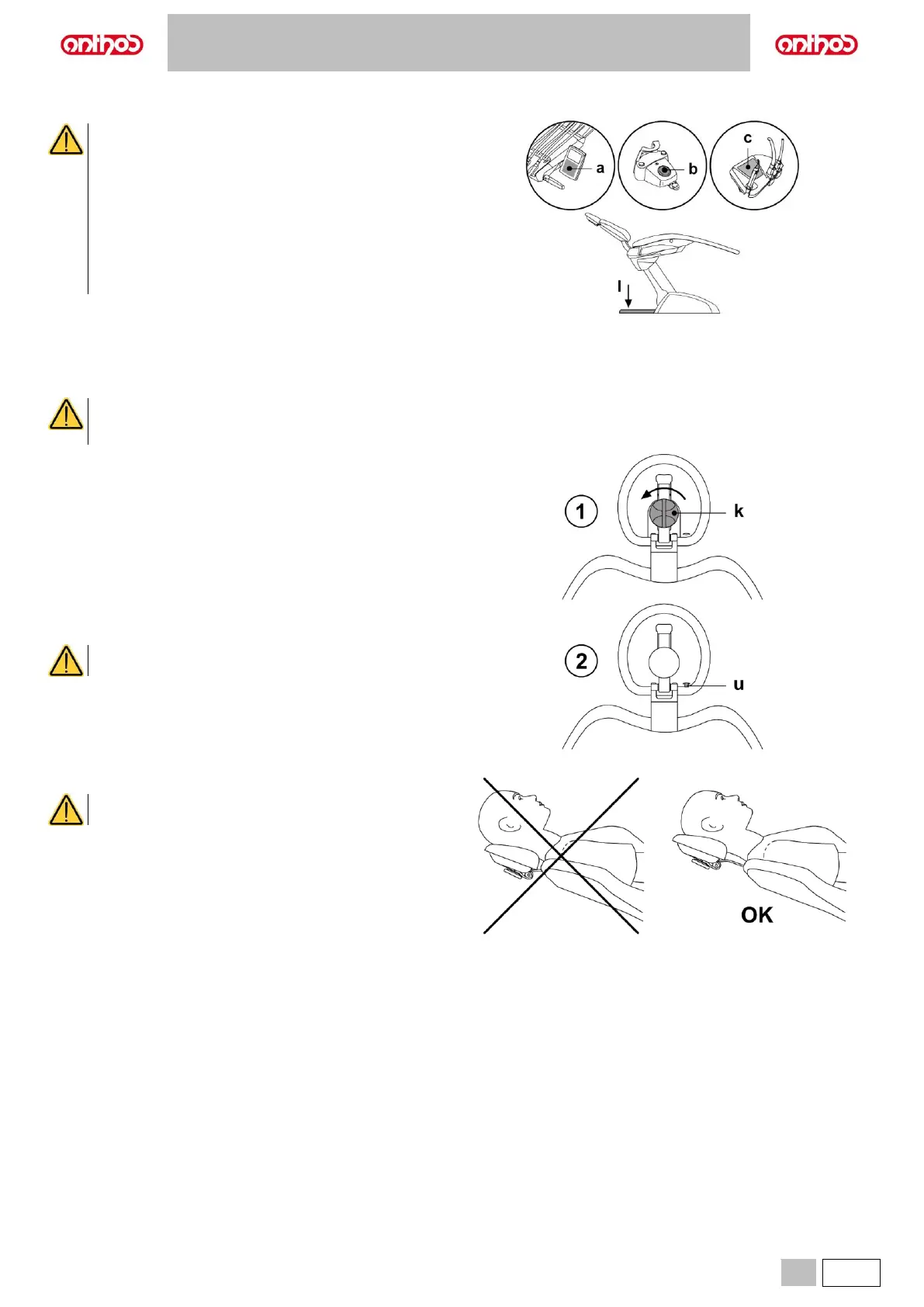 • Do not attempt to move headrest while patient is resting against it.