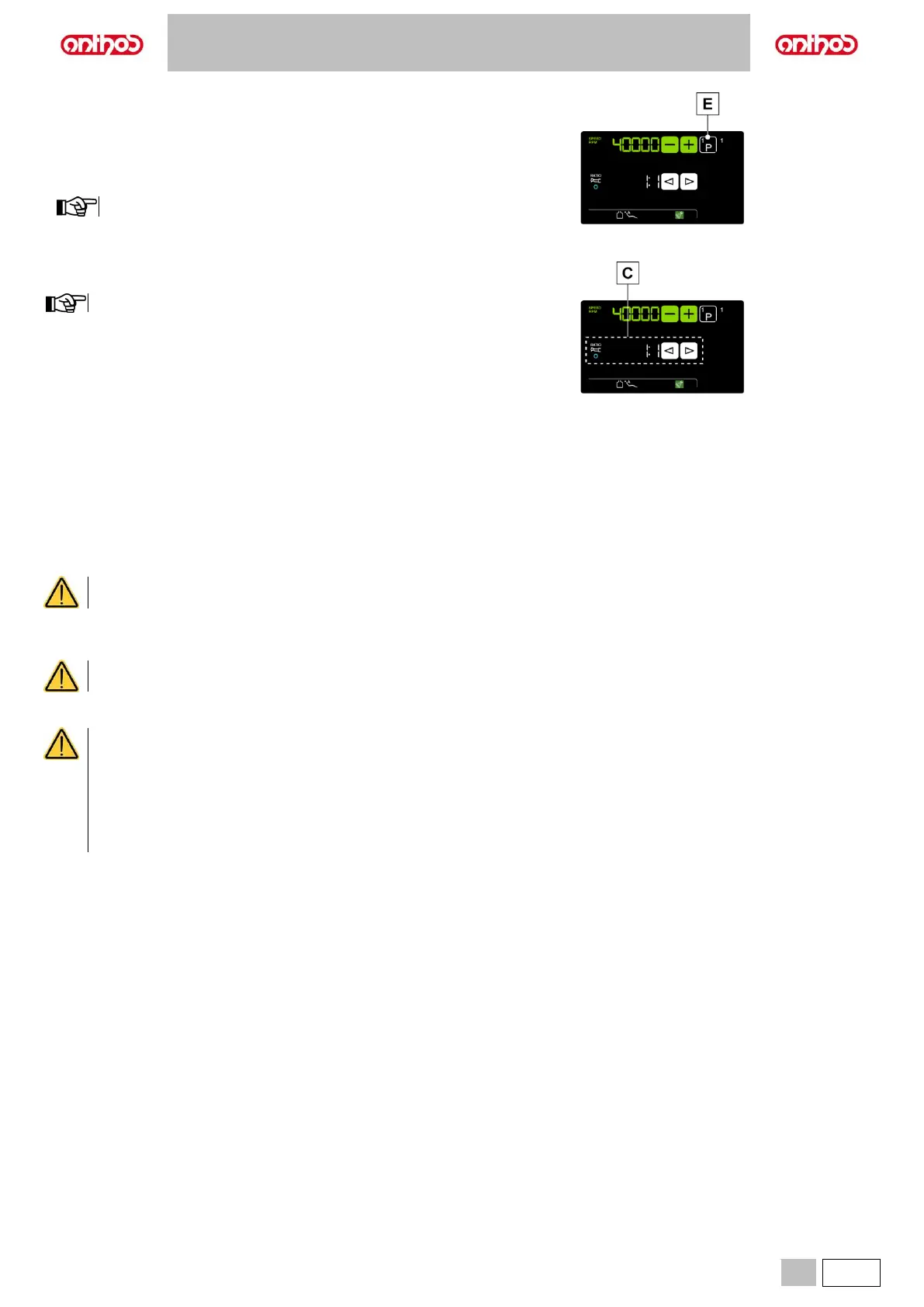 Select the desired reduction ratio using buttons (C).