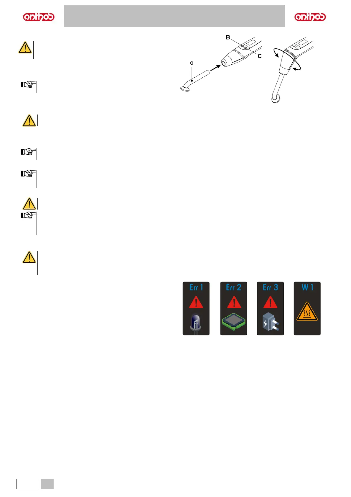 • Before use, sterilise the fibre optics, the anti-reflective