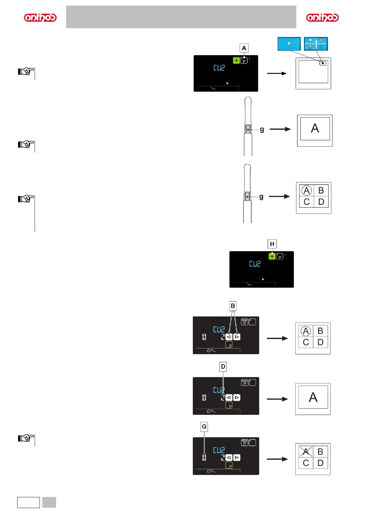 • Pressing the touch button (g) on the handpiece (or activating the foot