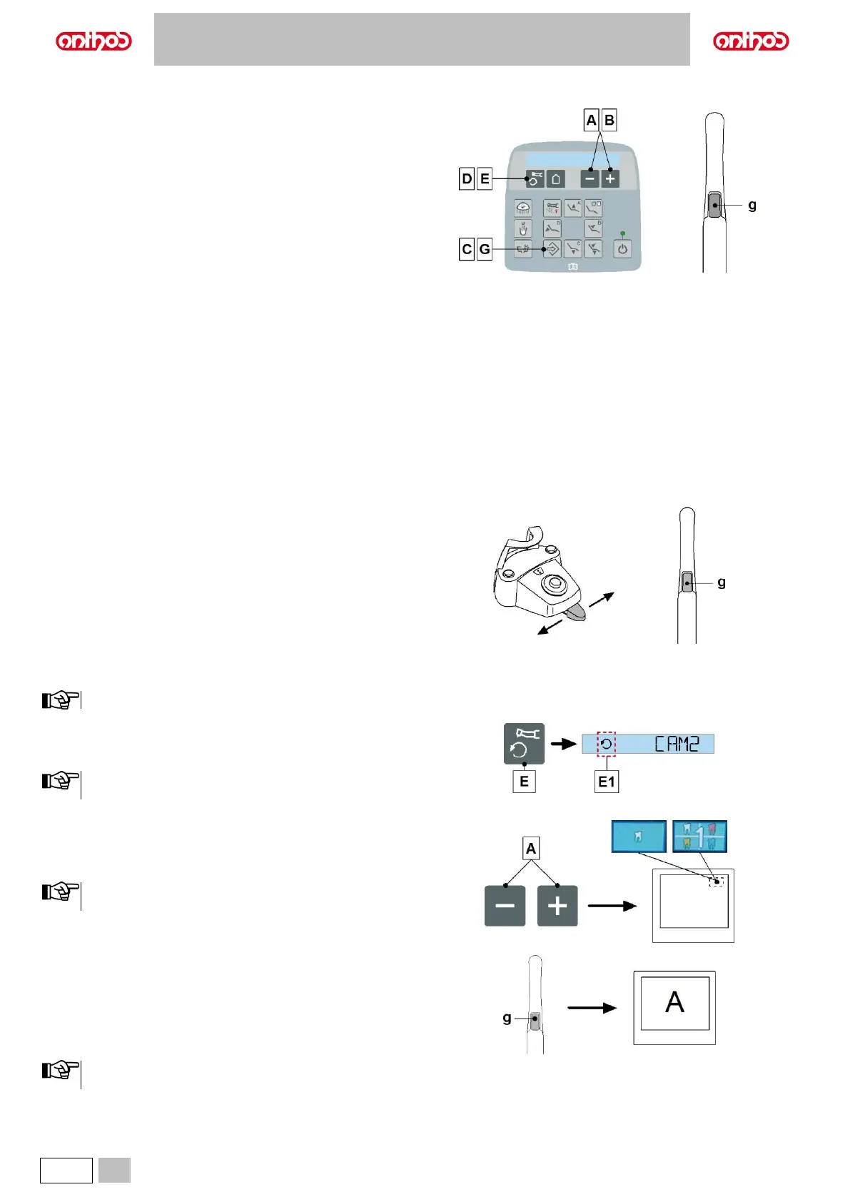 • Shortly press the touch key (g) on camera handpiece or operate the