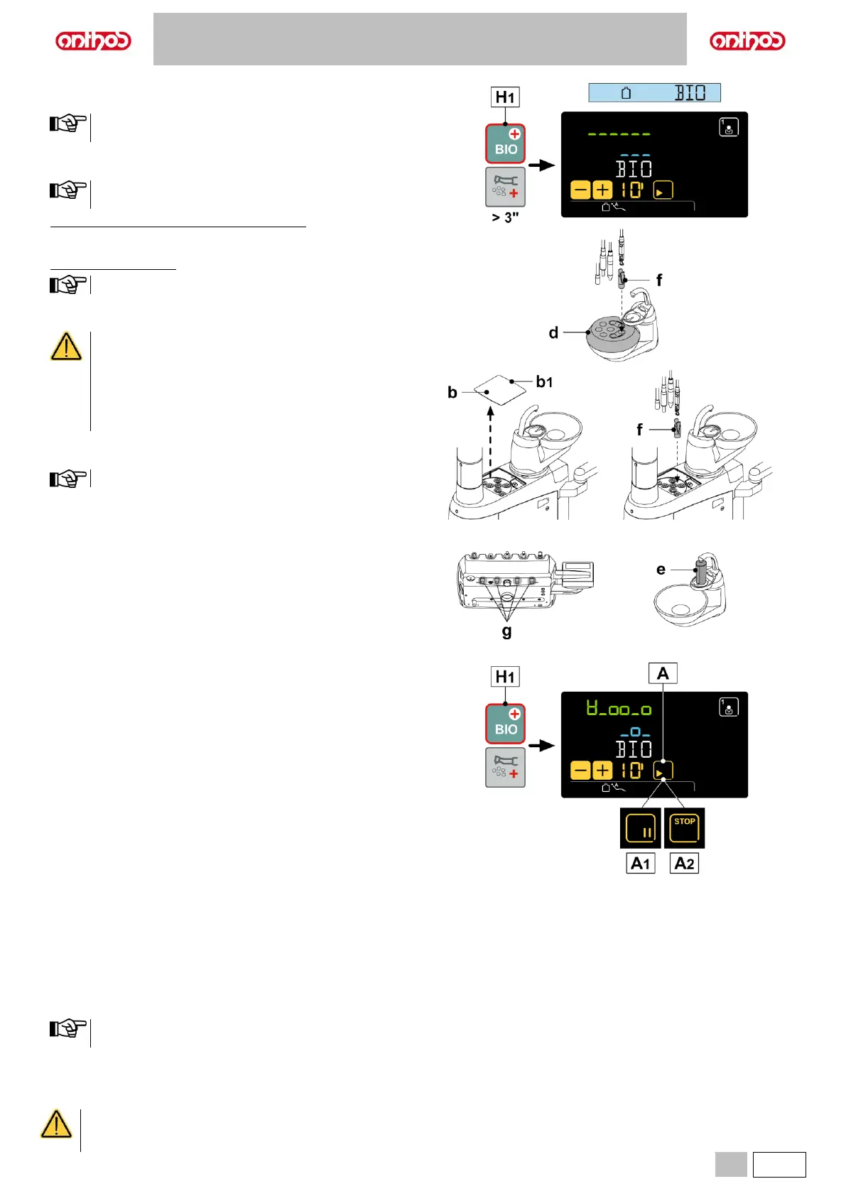 • Enter the BIOSTER disinfection cycle by pressing and holding button