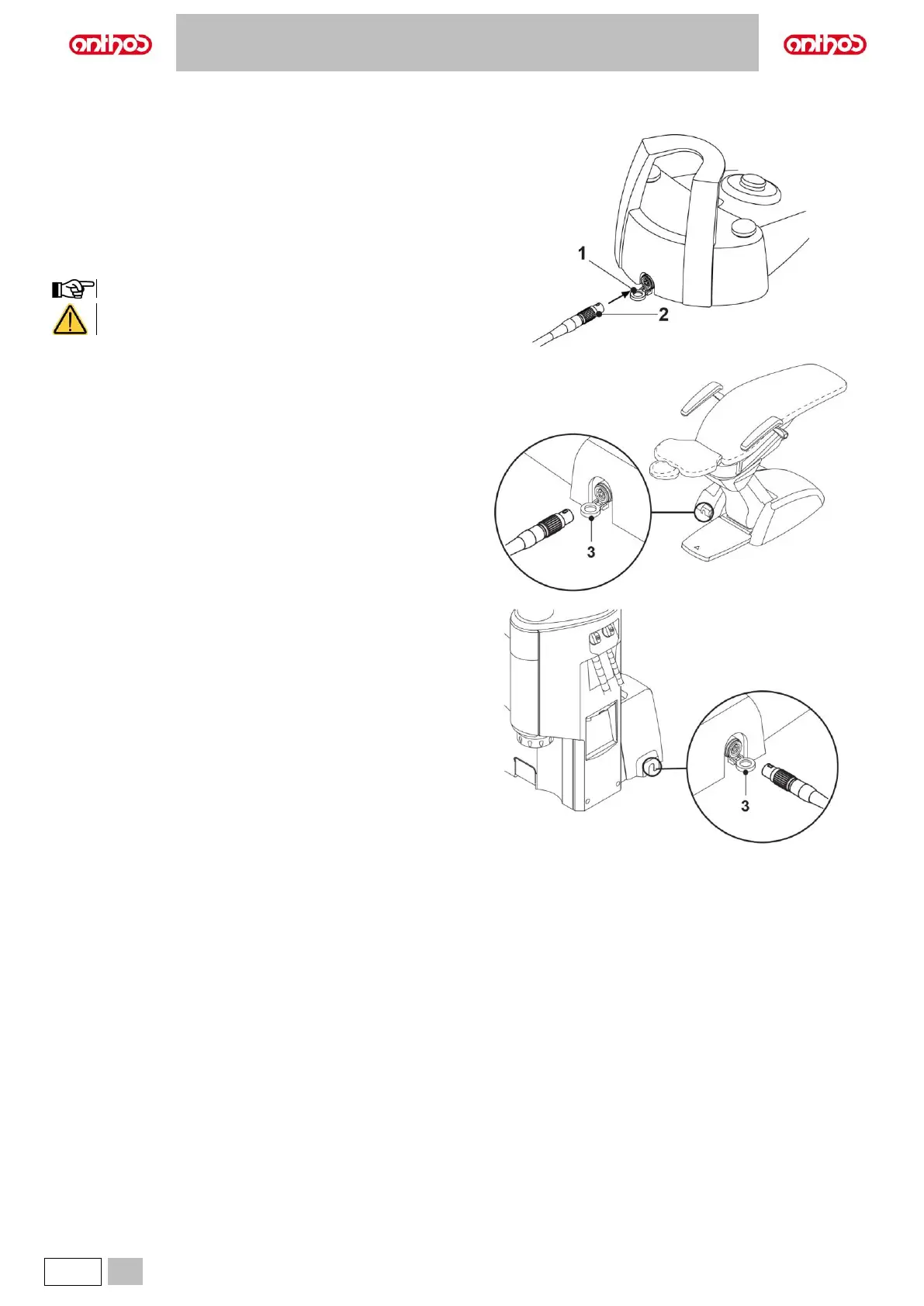 • Open the door (3) at the base of the dental chair and connect the other
