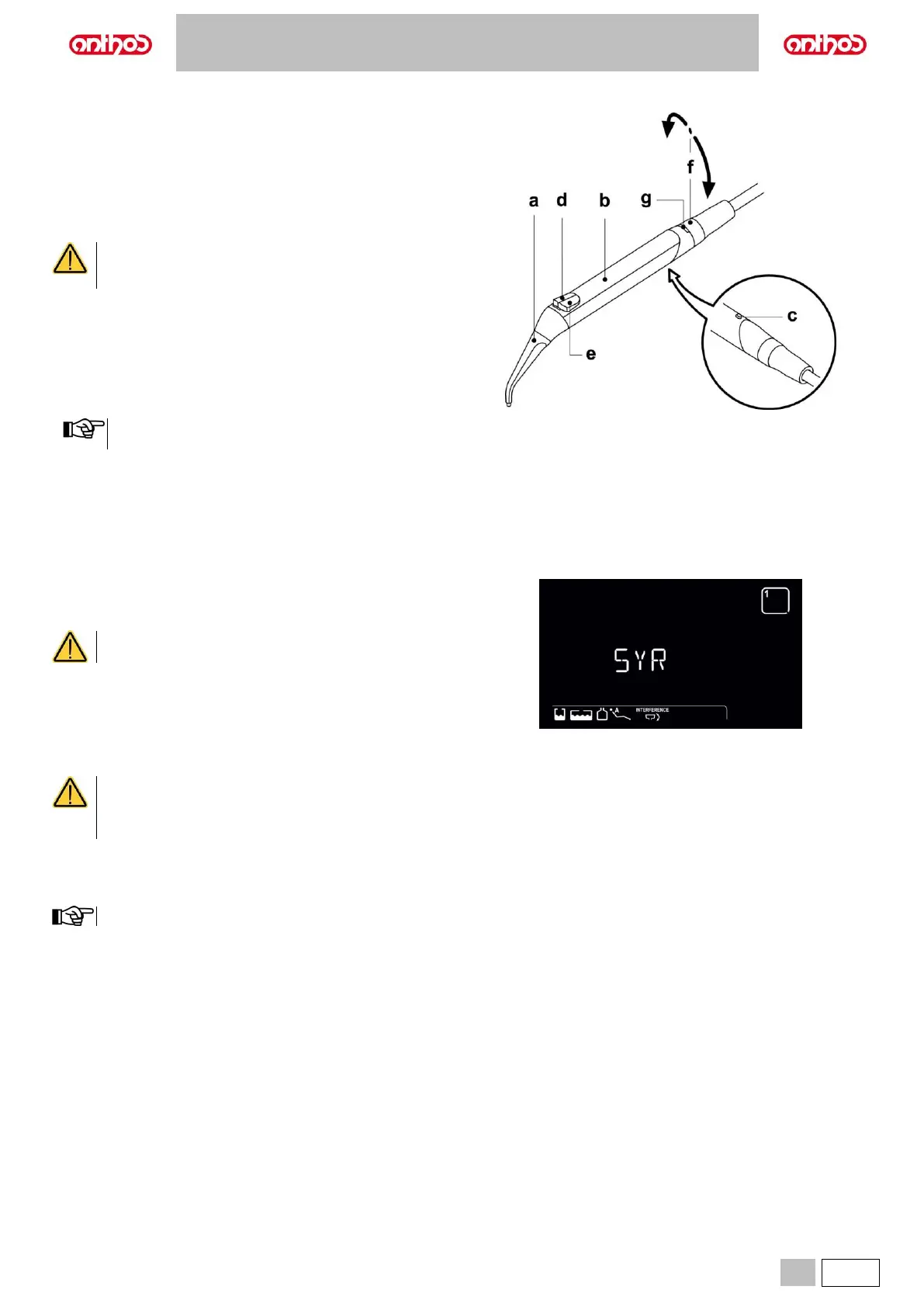g Hot/cold indicator LED (only for 6-function syringes).