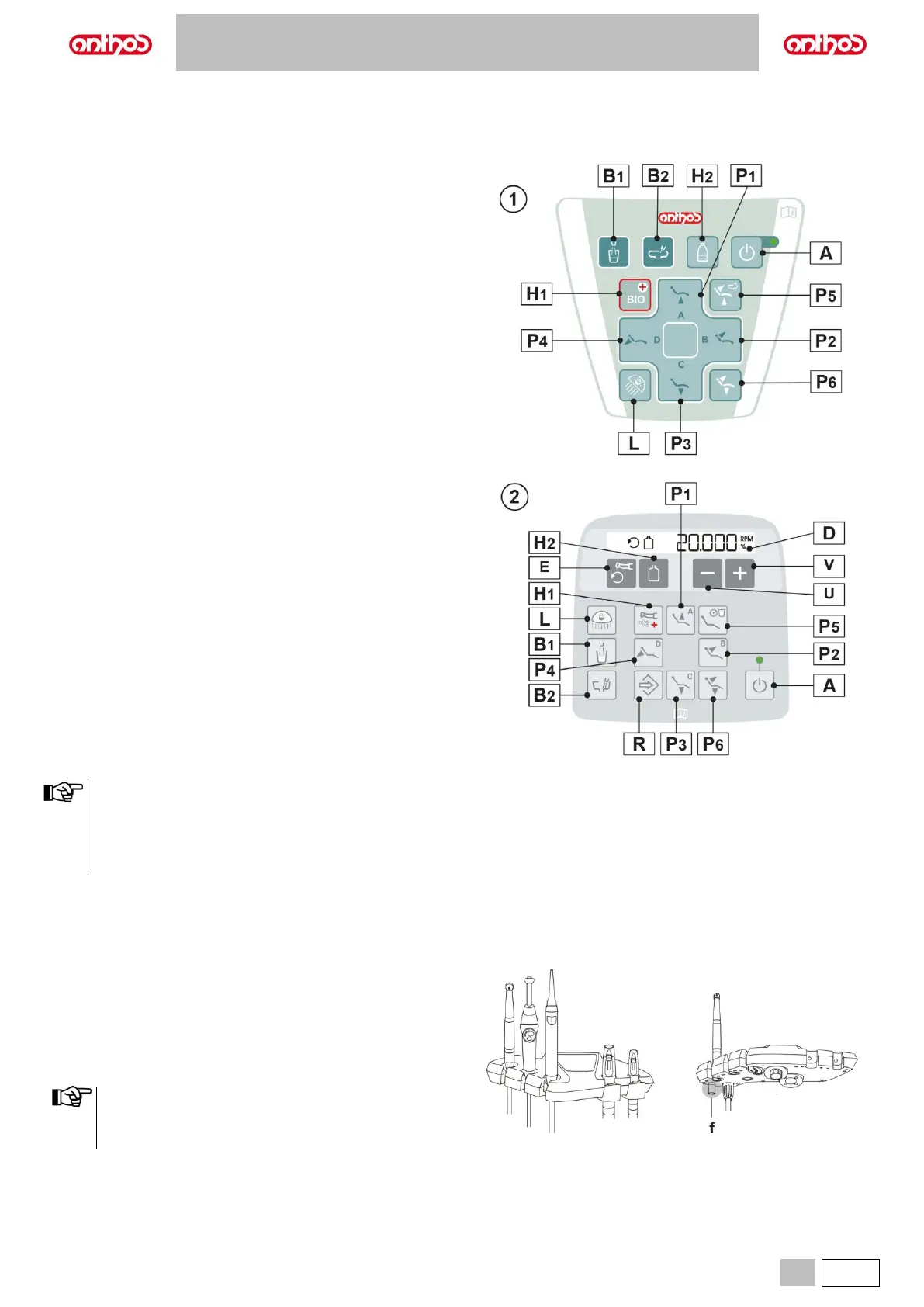 Operation of dental chair buttons: