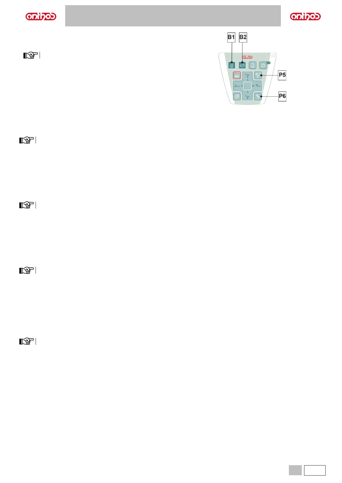 • Turn on the dental unit holding down the button (B1) on the assistant’s