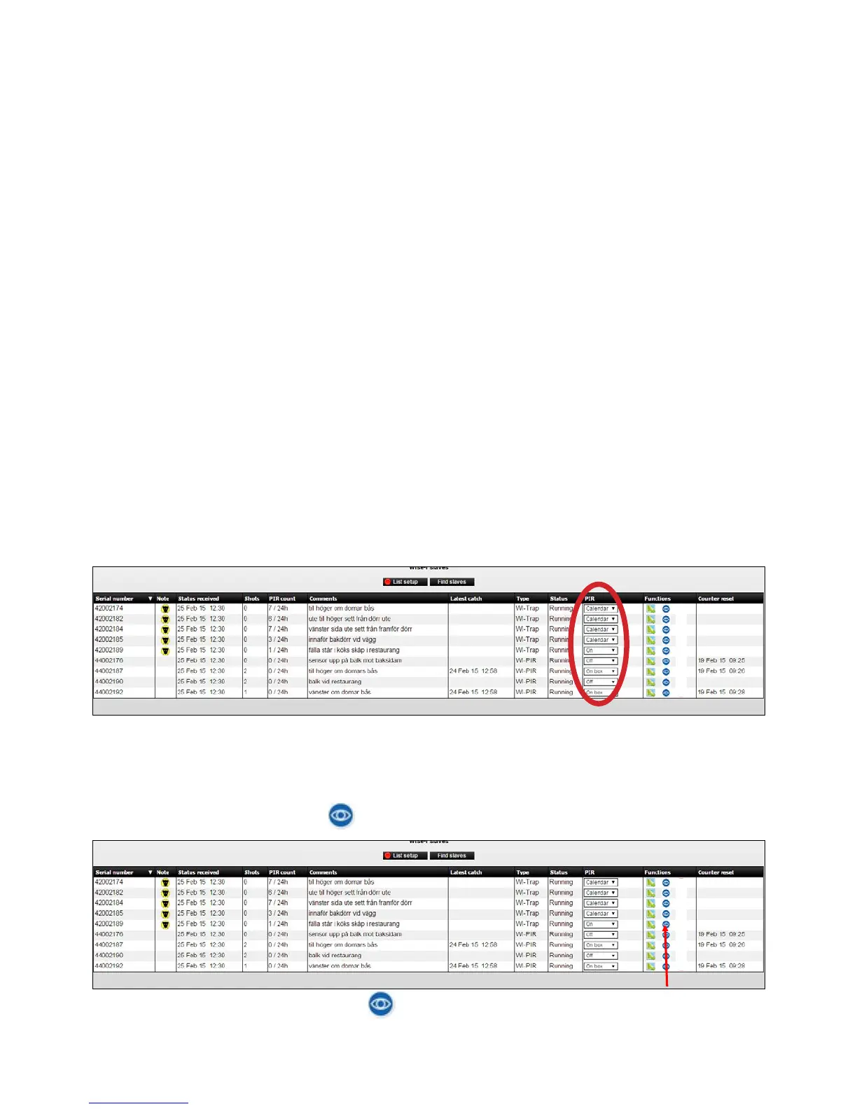 1. Click on the blue eye icon on the device where you want to see the PIR activity.