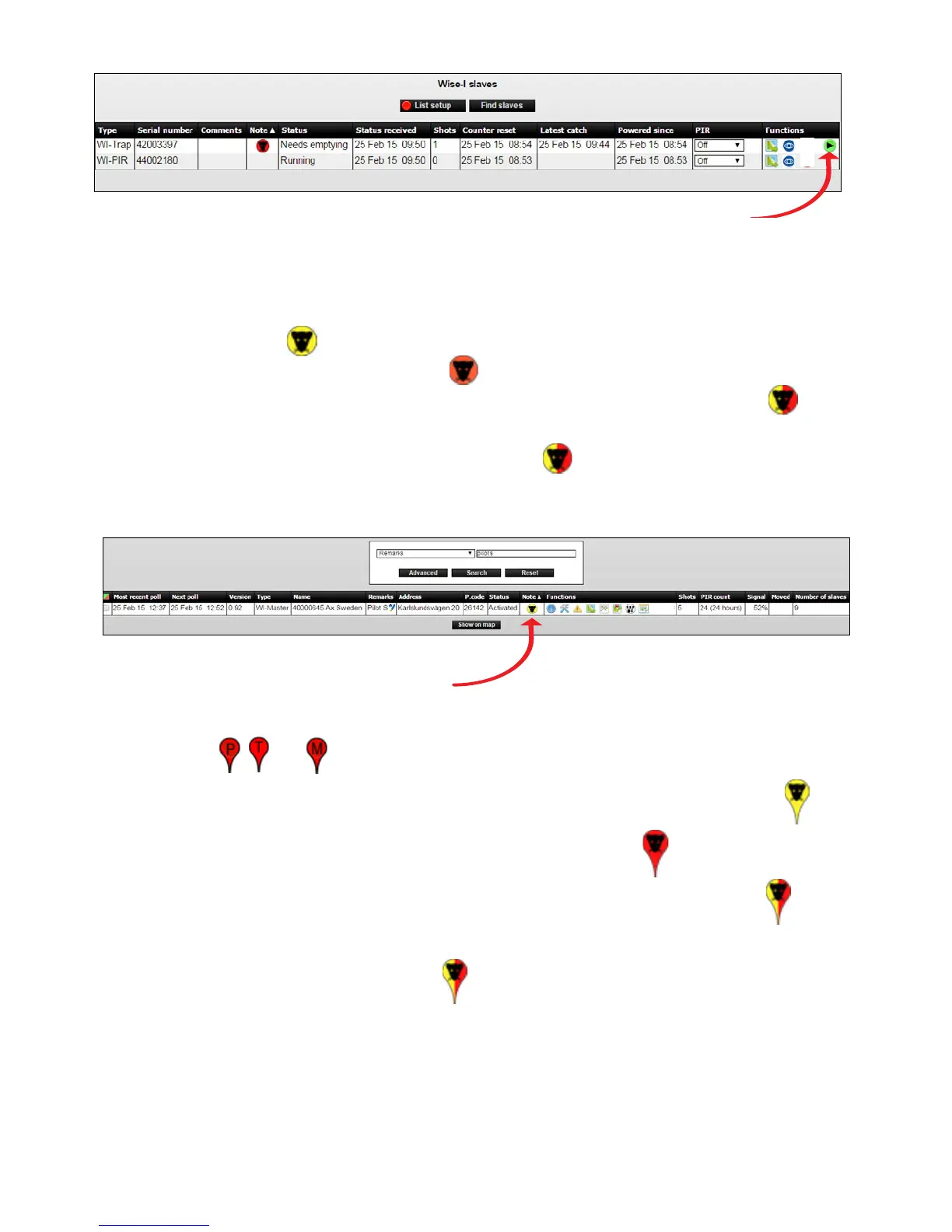 Traps with both a kill and PIR registration are displayed as a yellow / red rat head