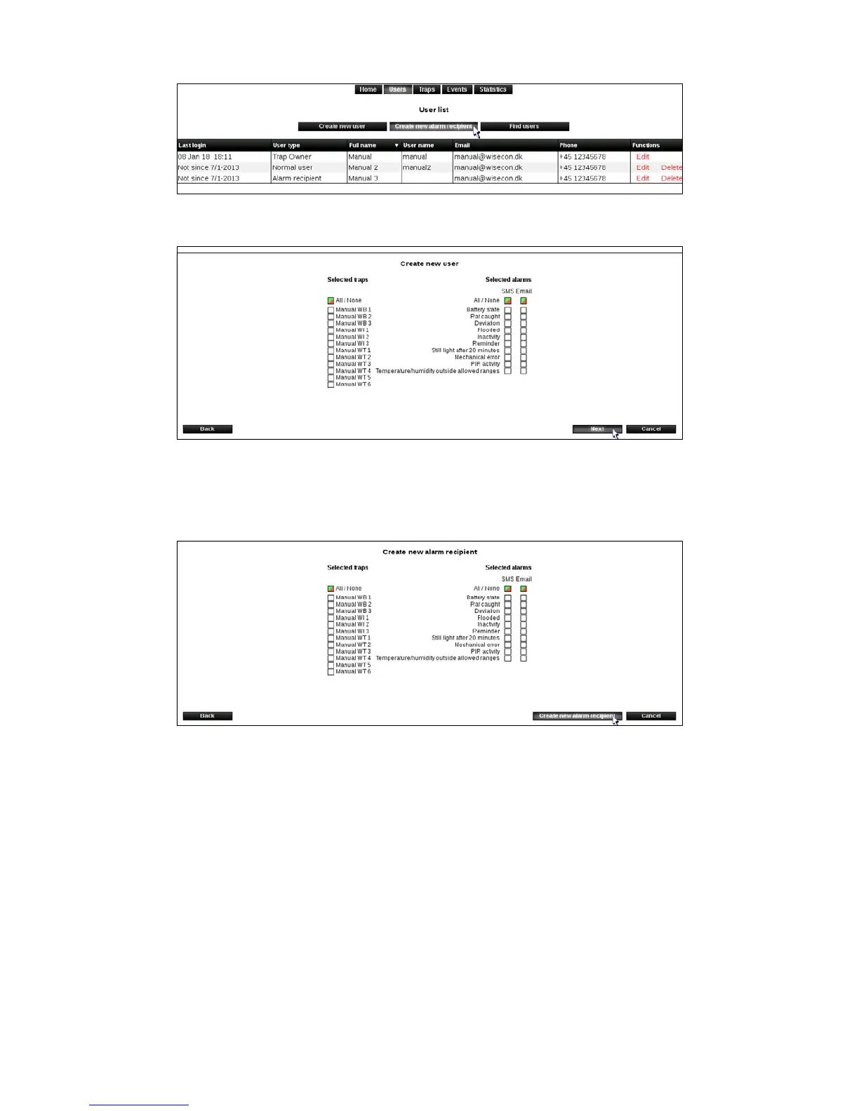 The alarm recipient is now created, and the person will receive alarms from the selected