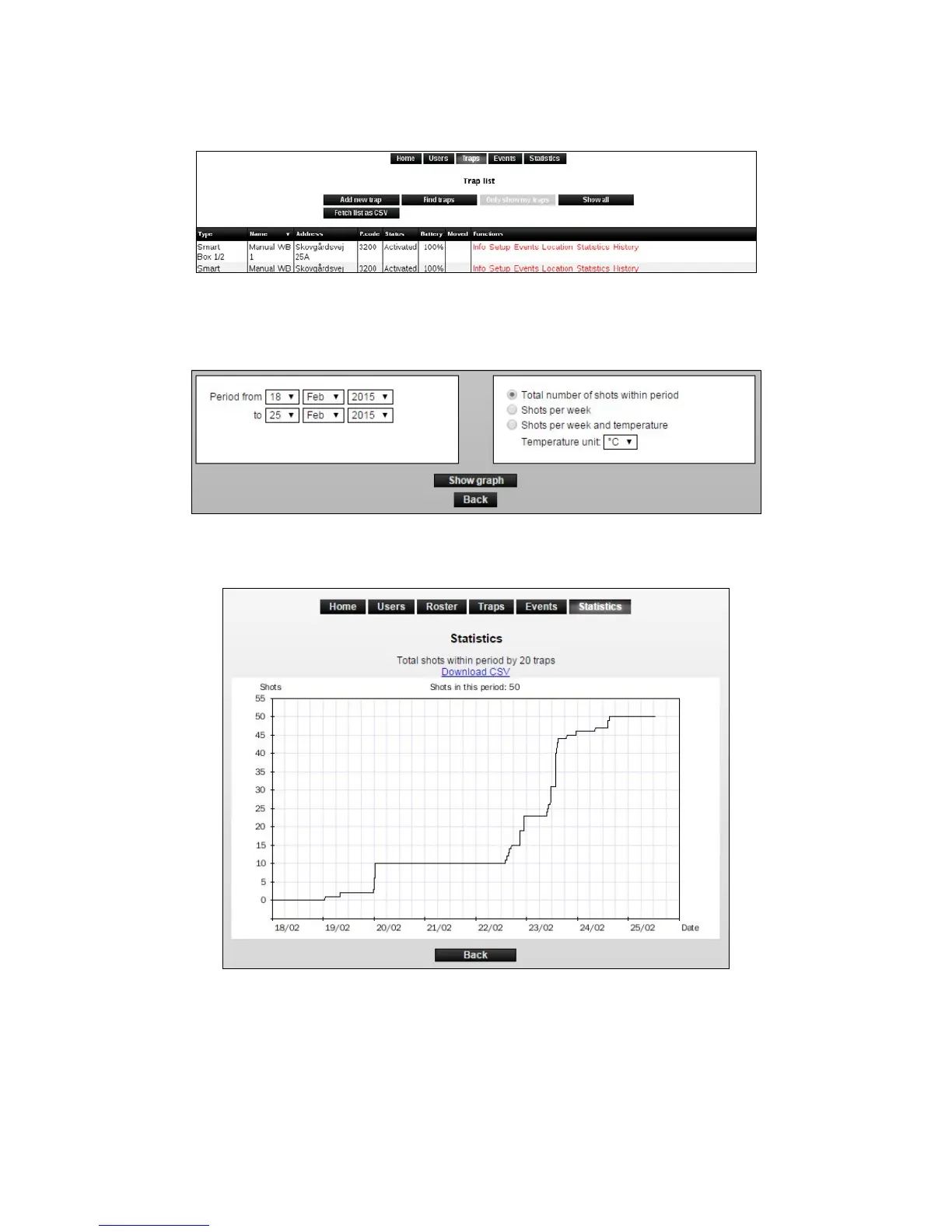 1. Click on [Statistics] in the trap list on the desired Smart Connect (Smart Connect system).