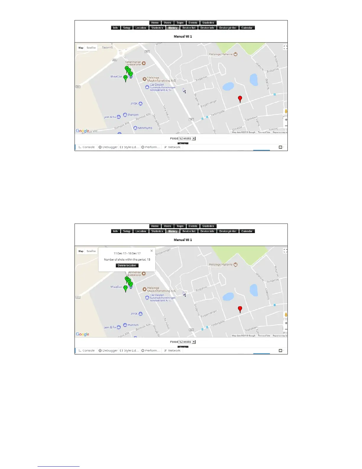 4. By pressing on a location (green drop) dates, location and number of shots during this