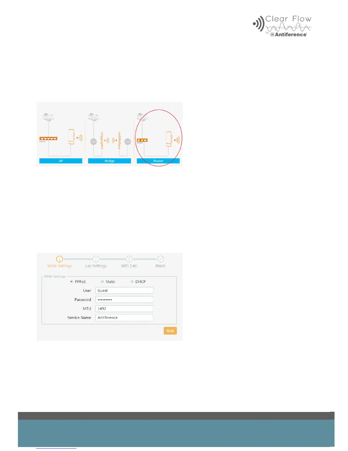 If the installation only features a modem, then a Clear Flow Wireless device can be congured as