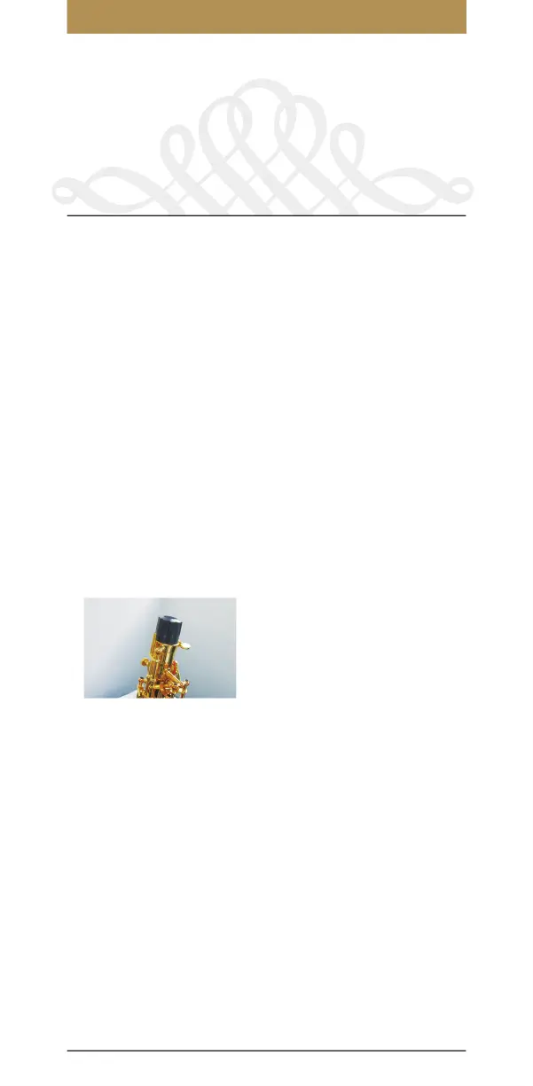 Loosen the ligature screw and remove the reed. Place the