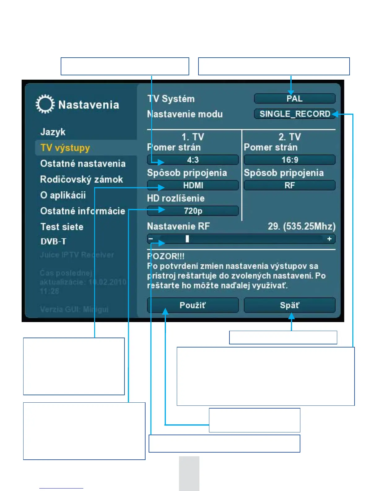 Nastavenie pripojenia STB
