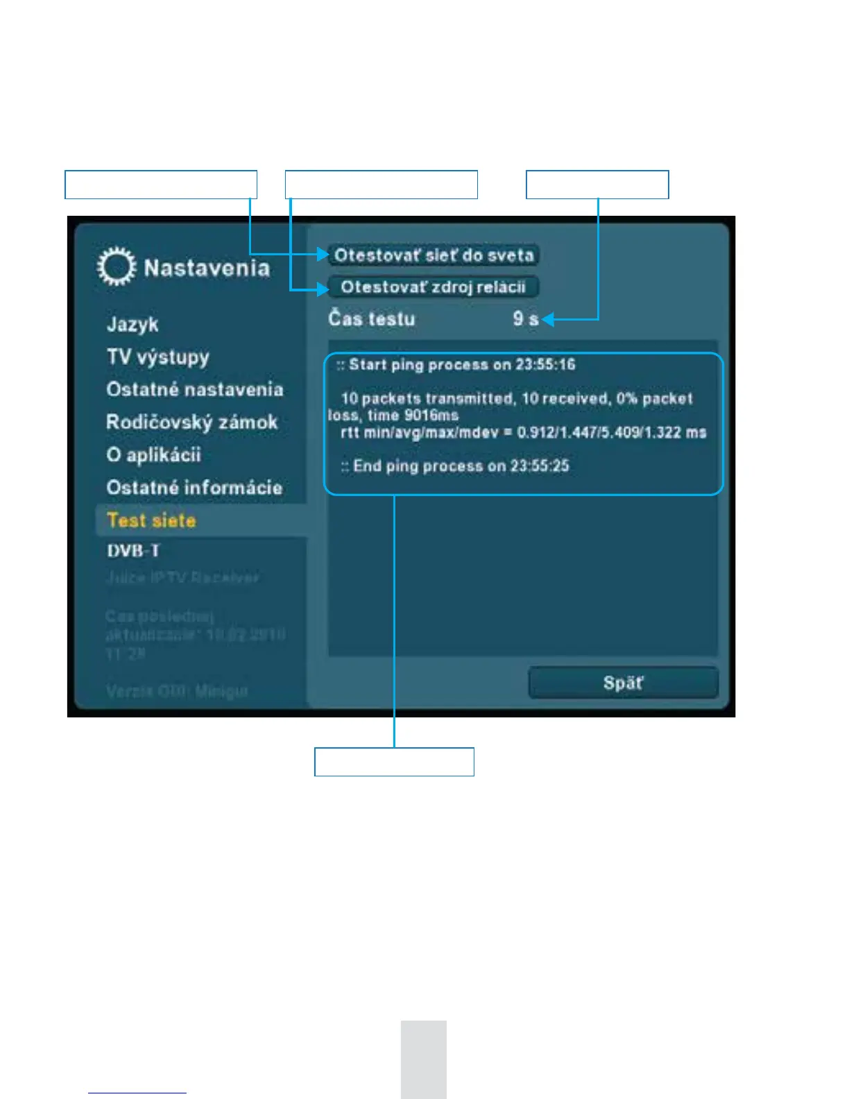 Test dostupnosti internetu Test dostupnosti služby Čas trvania testu