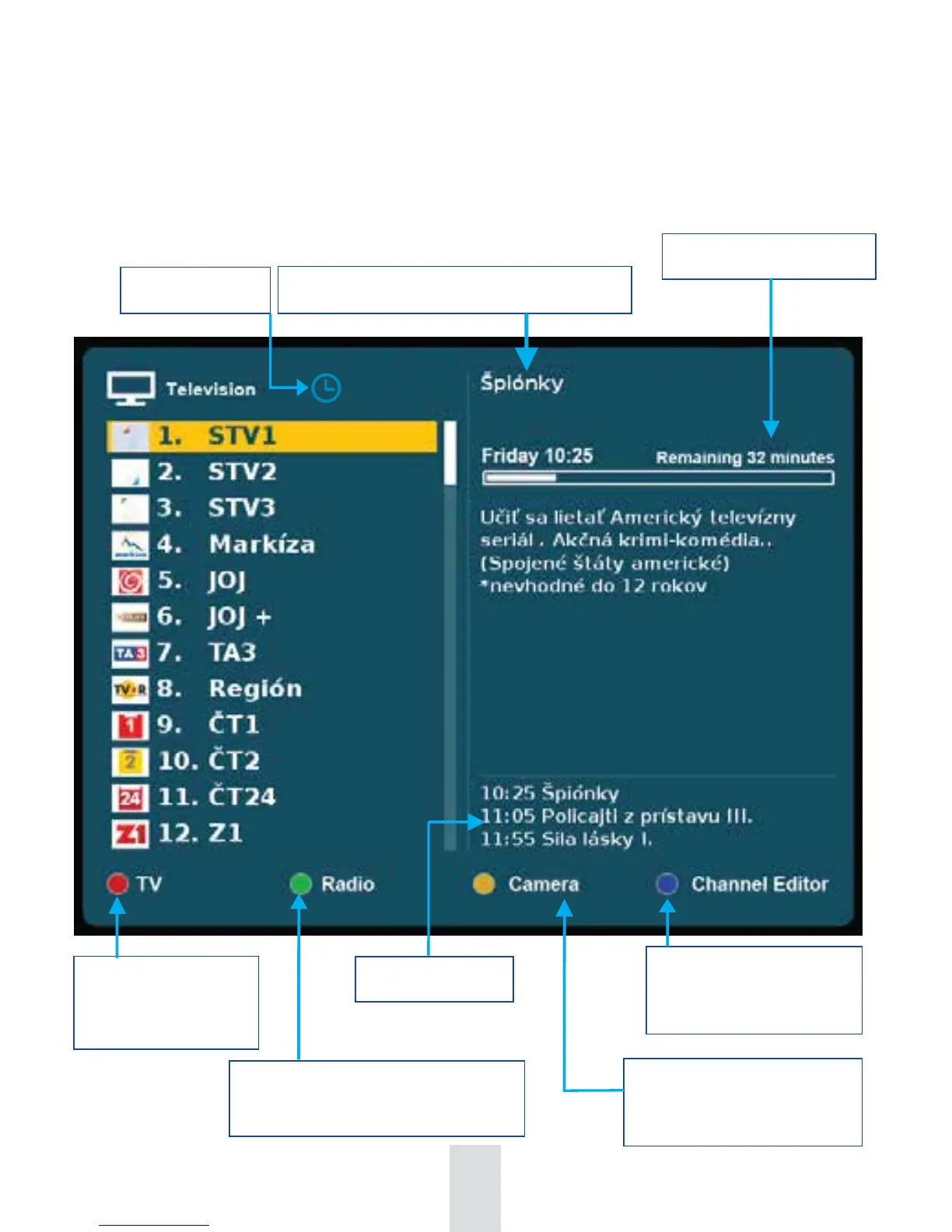 Use up / down arrows on remote control to navigate through Channel list channel by