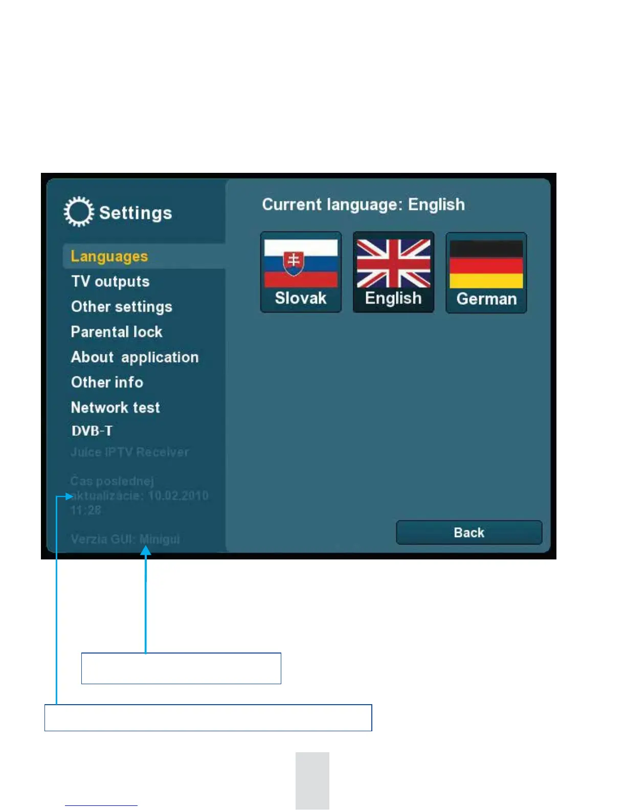 Current GUI version of set-top box