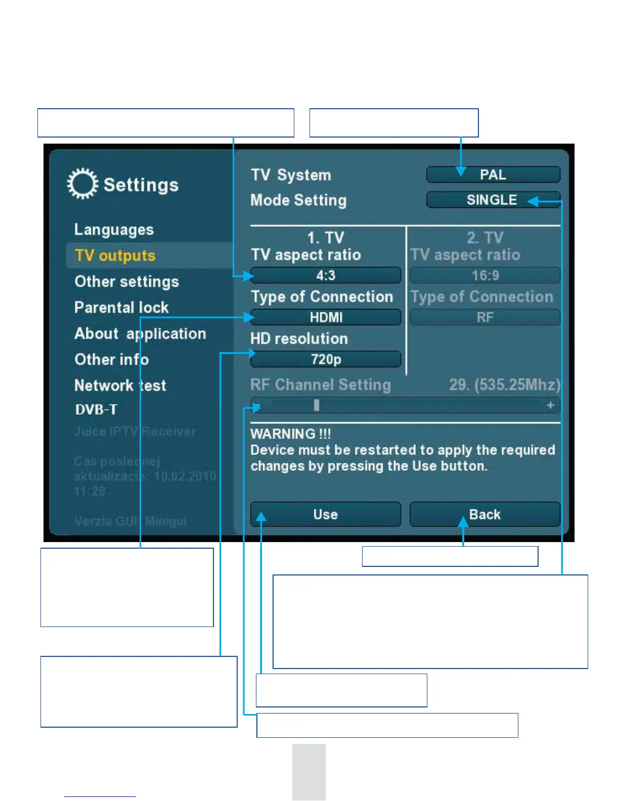 Single+PIP – connecting of 1st TV set+PIP functionality