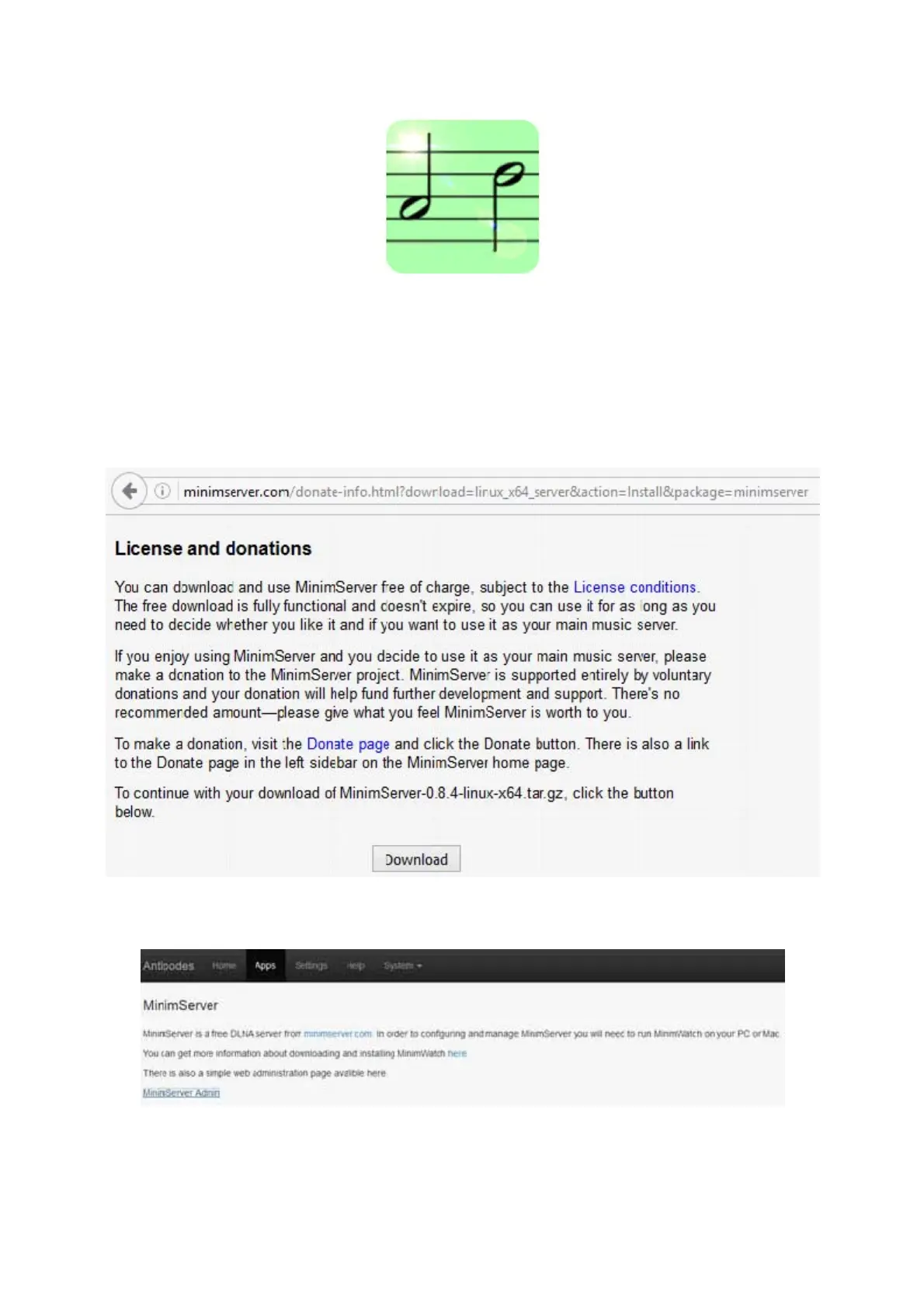 Select the ‘Apps’ menu item in the Antipodes Control Panel and click on the ‘MinimServer’ icon.