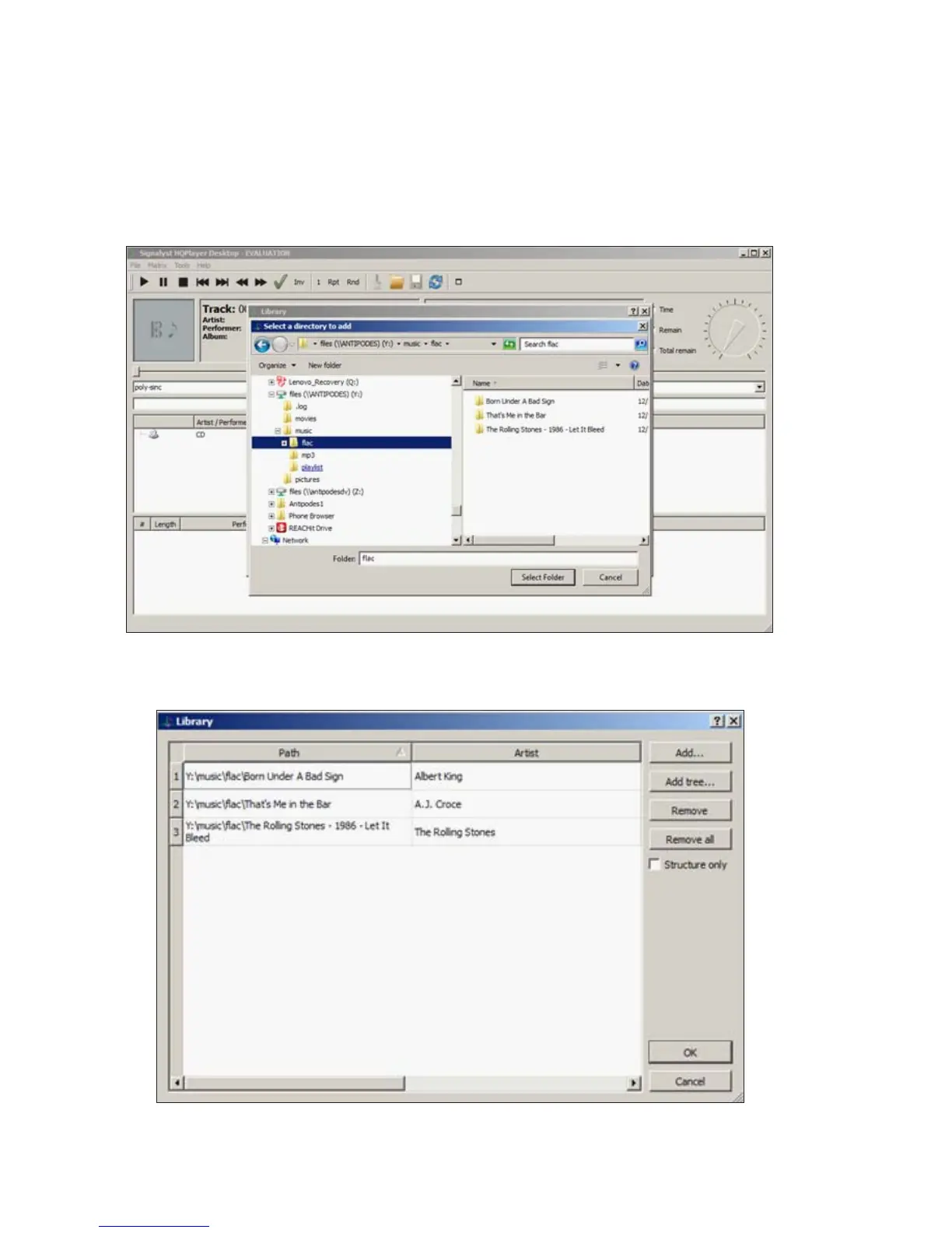 To start adding music les to HQPlayer click ‘File/Library’ and then ‘Add’ (for individual les) or ‘Add Tree’ (to