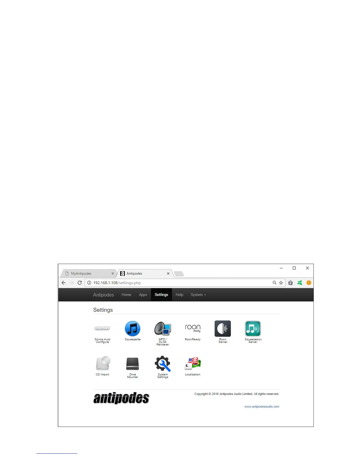 At the Antipodes GUI, select the menu item ‘Settings’.