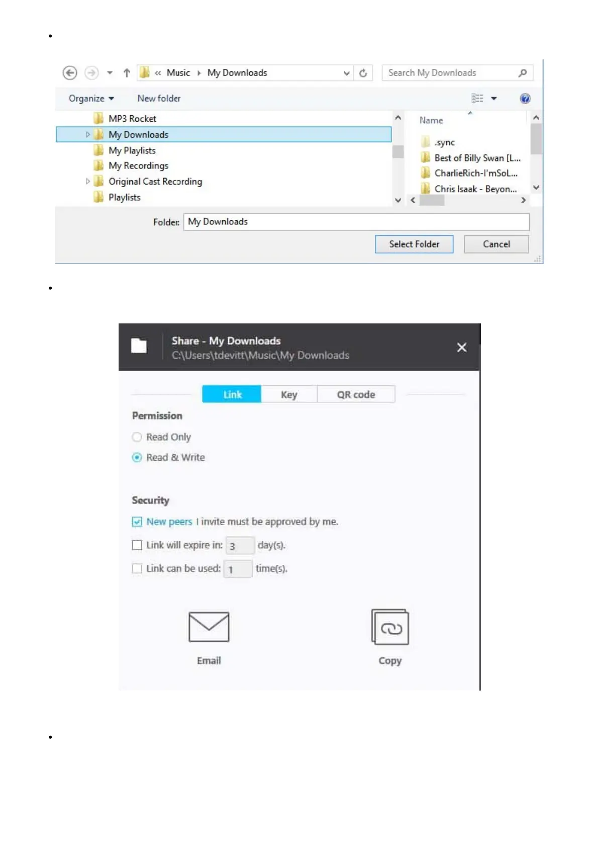 Select the folder to be copied/synced: