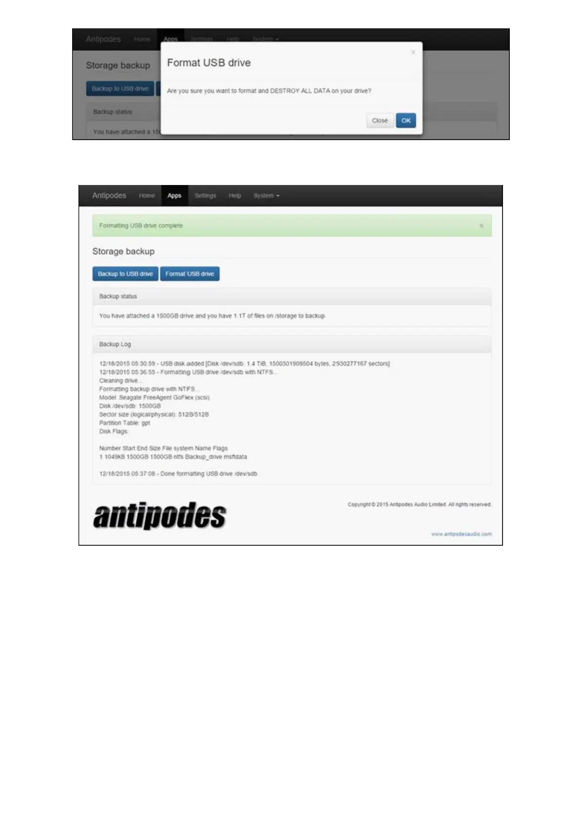When the USB drive has been formatted then click the ‘Backup to USB drive’ button.