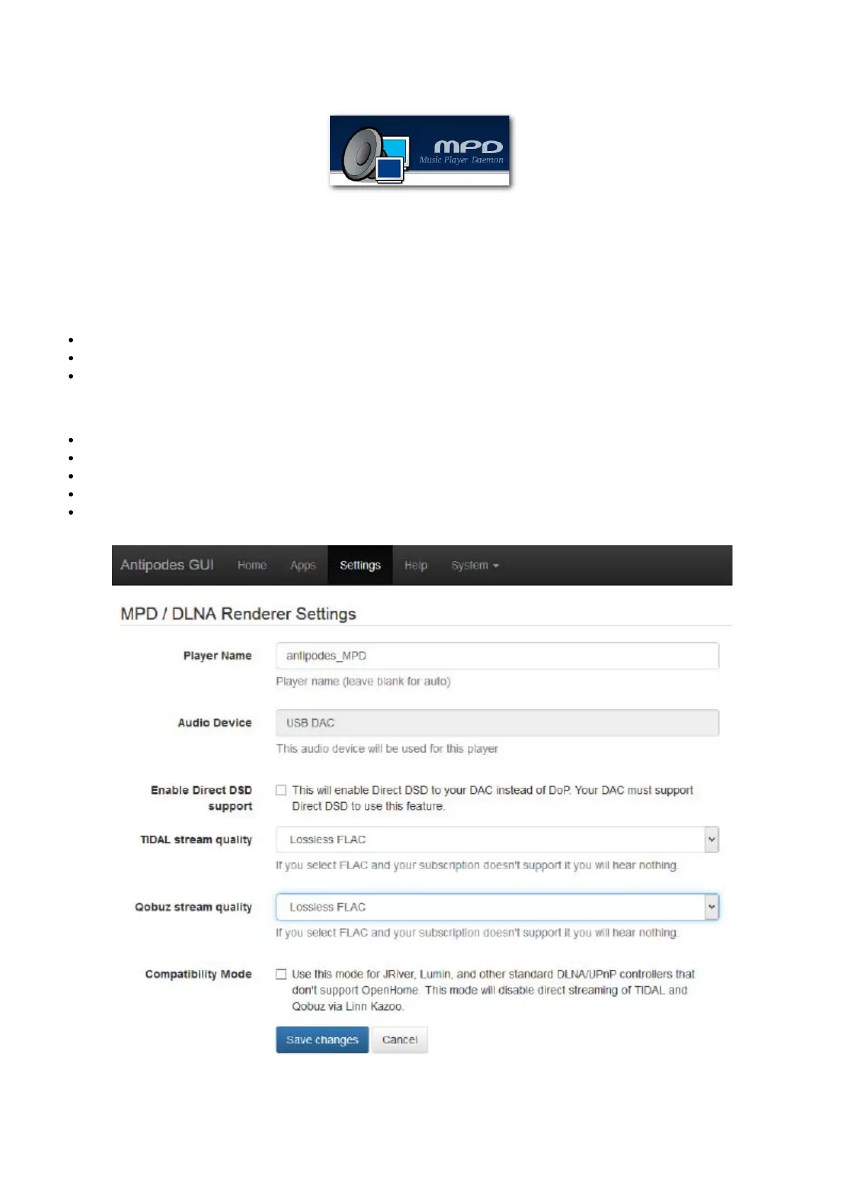 When using MPD as a complete solution, the rst step is to setup the MPD renderer app at the Antipodes Control Panel: