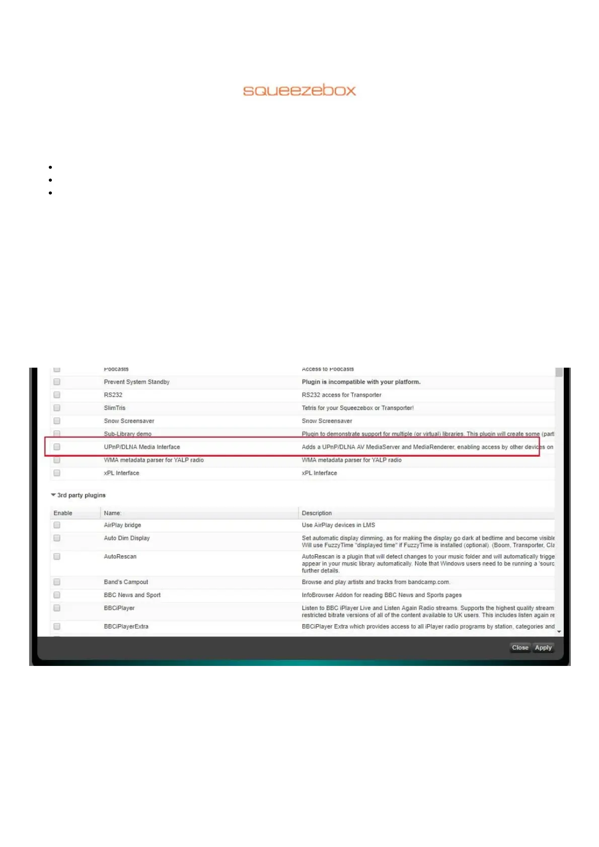 But in many cases we nd the simplest solution and with the widest compatibility is achieved by installing one plug-in to Squeezebox server to