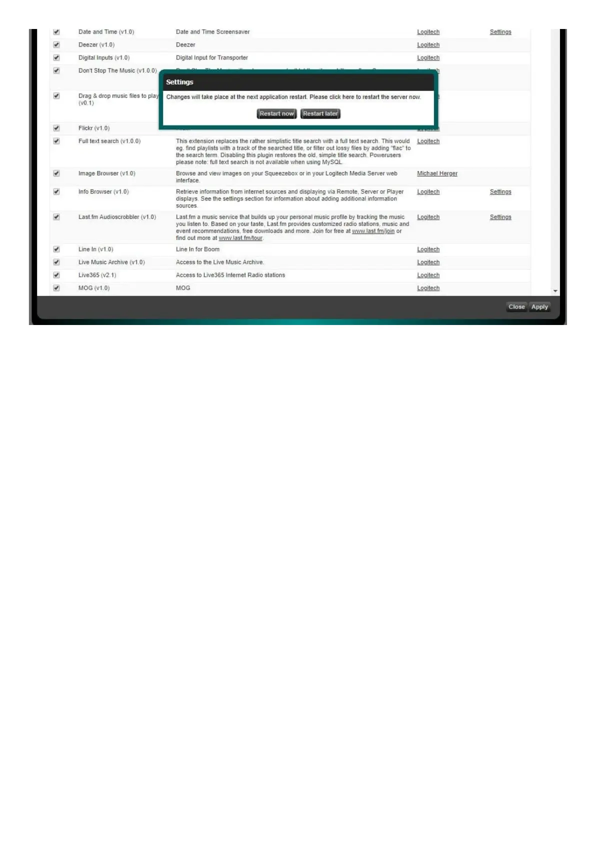 Wait for two minutes to let the plugin nish installing, and then click on ‘Restart now’ to restart Squeezebox Server.
