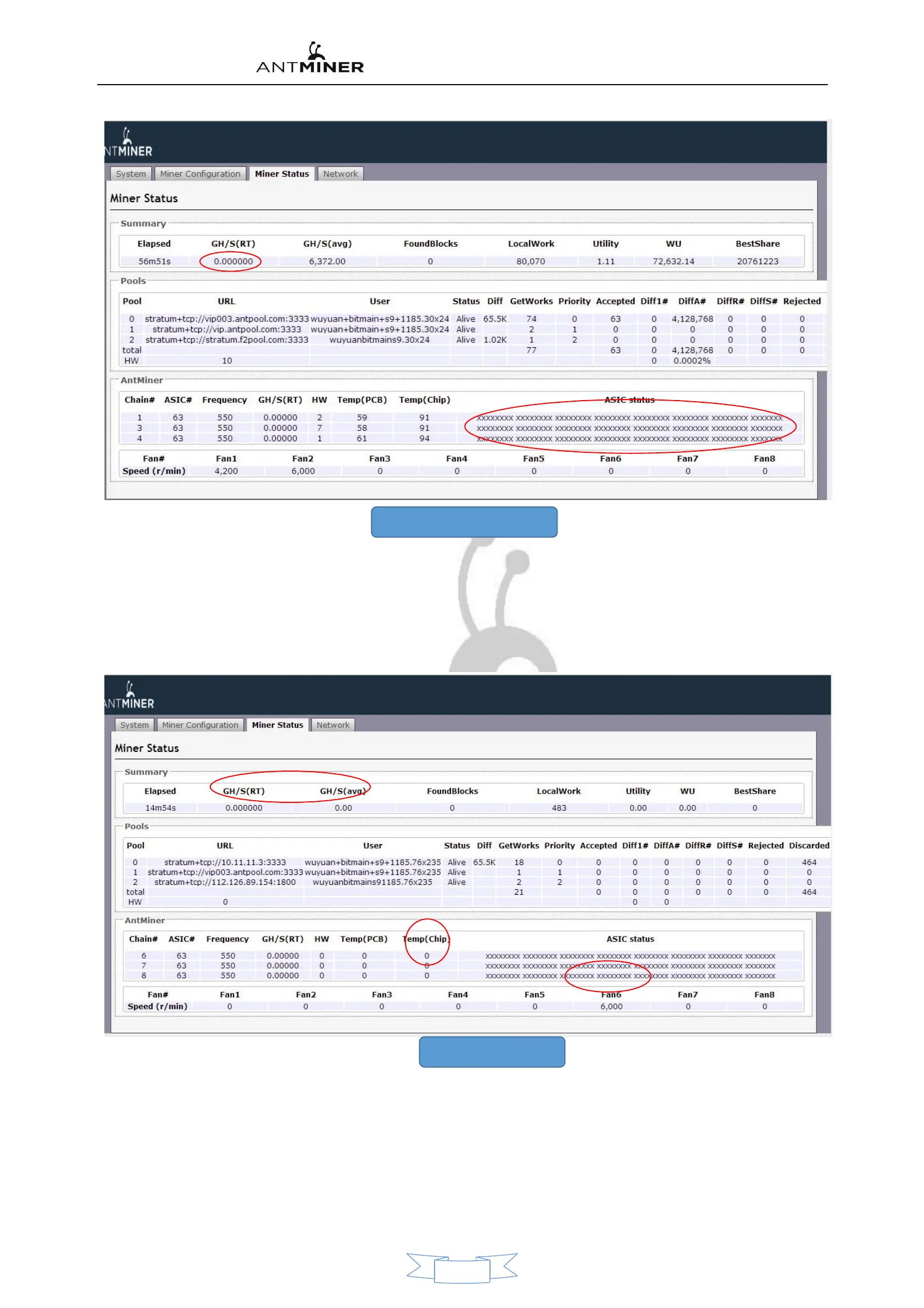 The above phenomenon GH / S (RT) is 0, GH / S (AVG) computing power is reduced, the chip is all XX, red light flashes. Most of this phenomenon is