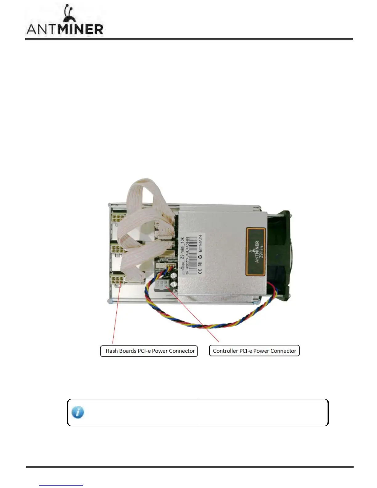● Three PCI‐e connectors for the hash boards. Each hash board has one PCI‐e connector.