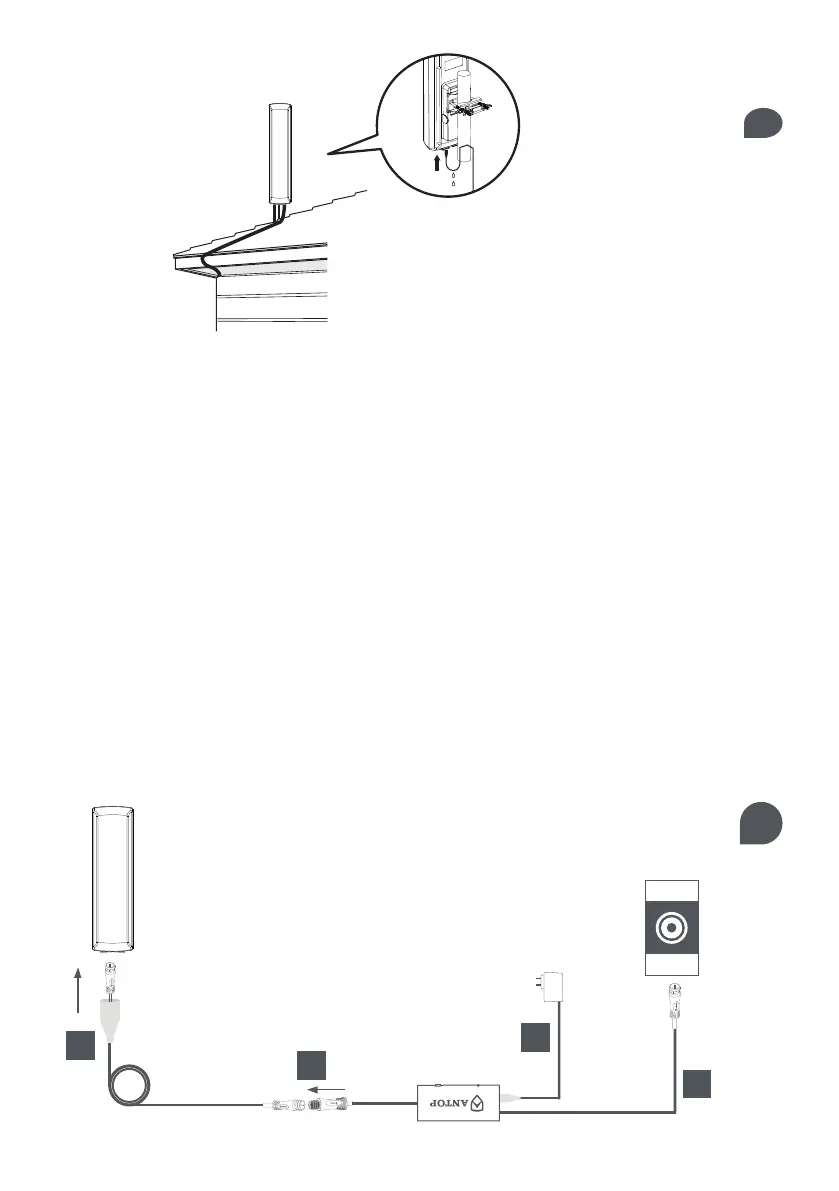 Conecte el cable coaxial con un casquillo a prueba de agua al conector de la antena. Ponga de