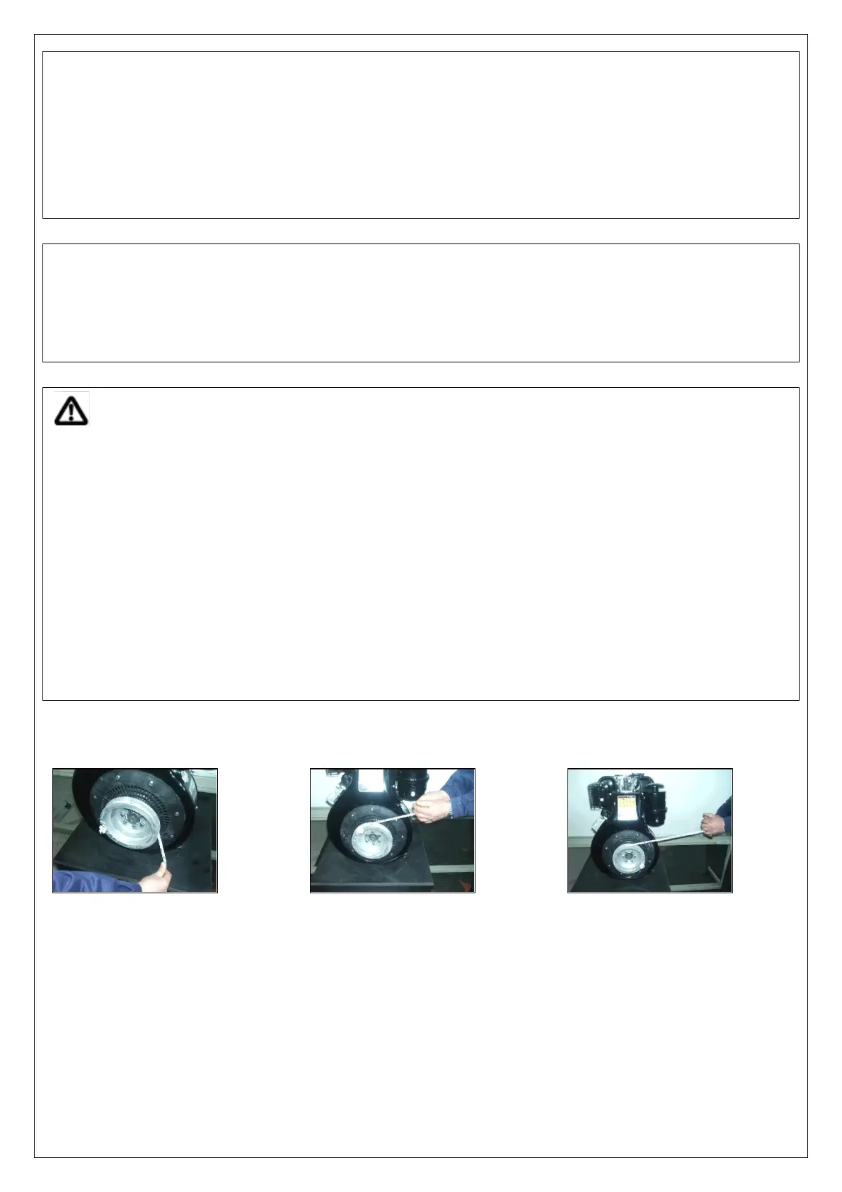 necessary repairs done. Be very careful when working with the exposed starting pulley. Do not wear loose