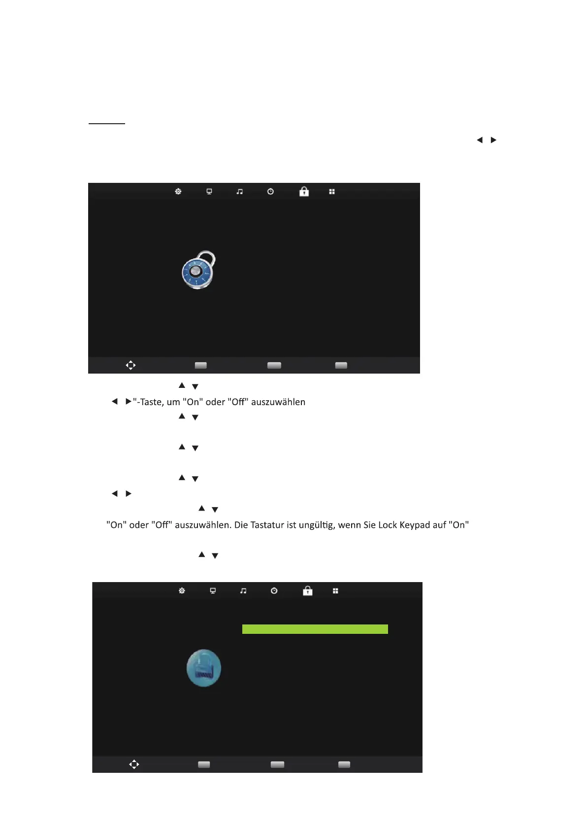 / um "Key Lock" auszuwählen, und drücken Sie dann die Taste, um