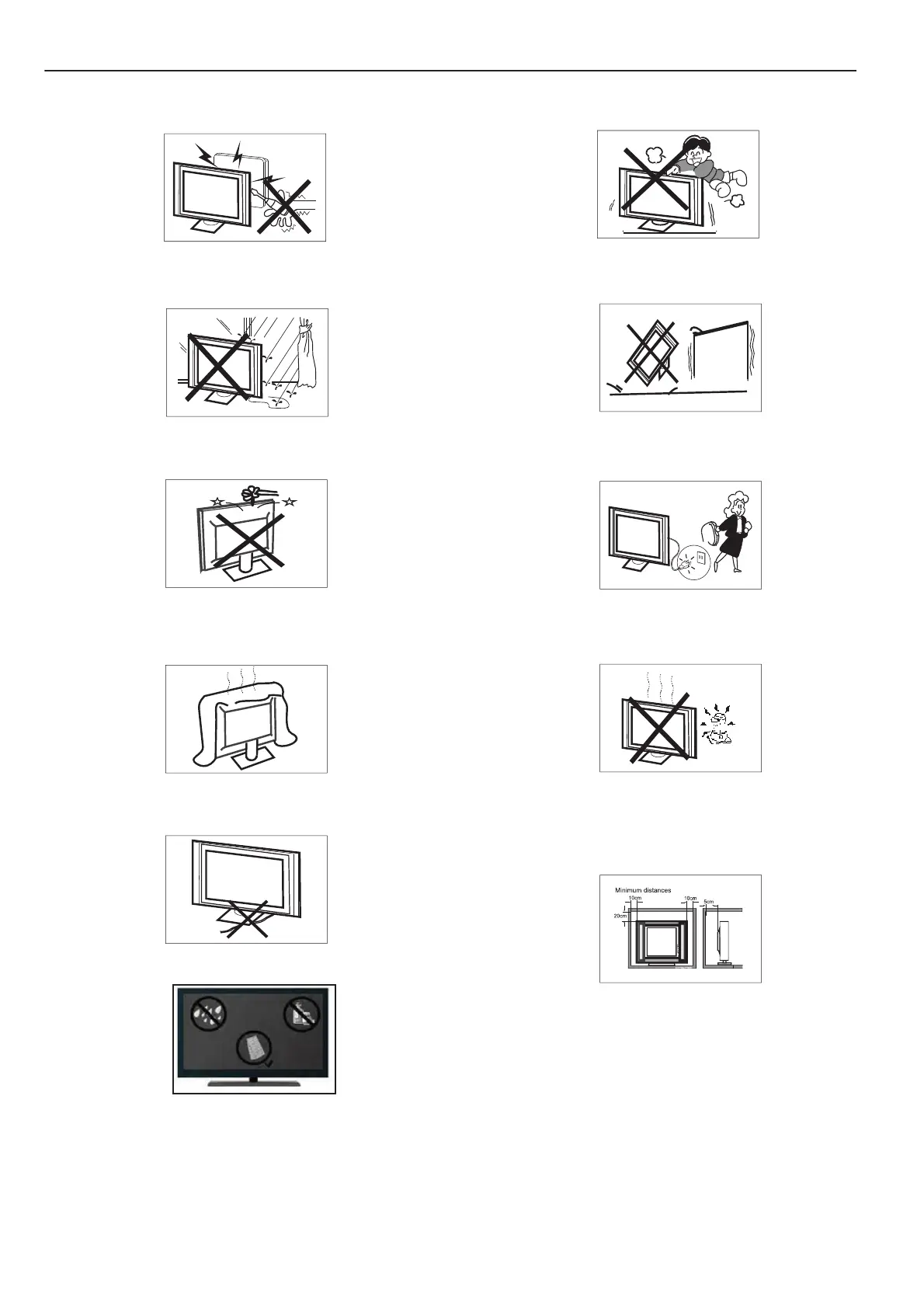 Do not drop or push objects into the television cabinet slots or