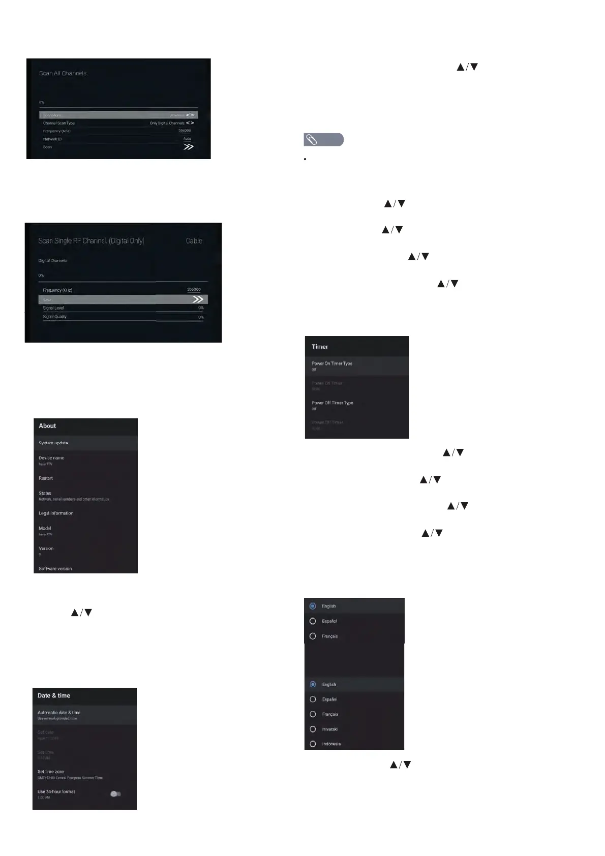 settings of TV.