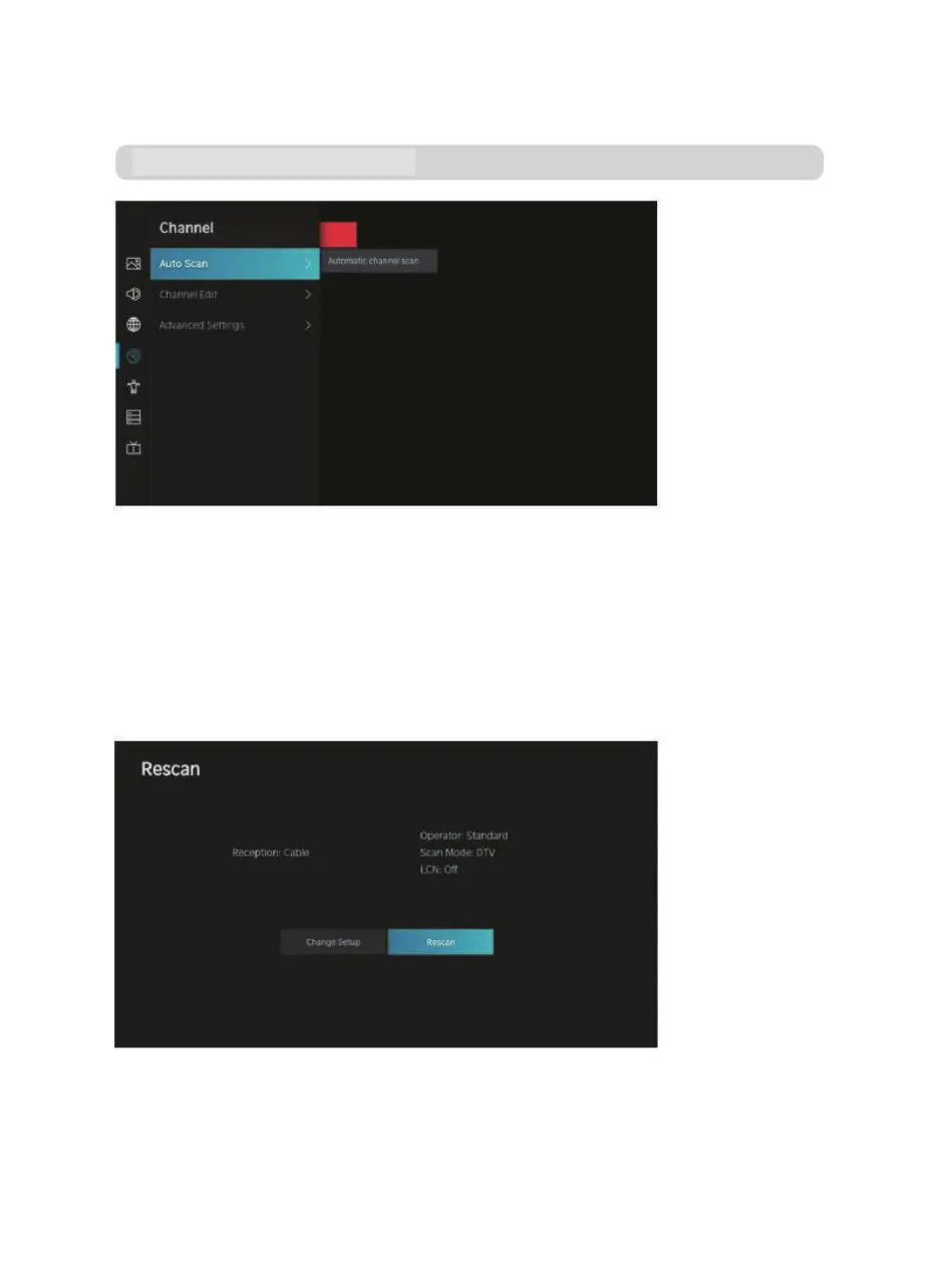 In questa pagina, si può scegliere di scansionare di nuovo i canali o di cambiare le impostazioni.