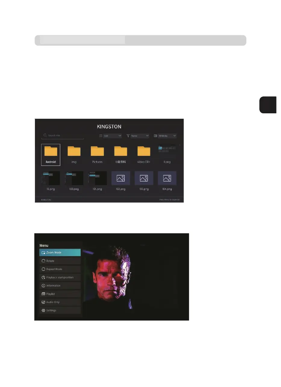 (Filme). Drücken Sie Menu, um die Menüpunkte auf der linken Seite anzuzeigen.