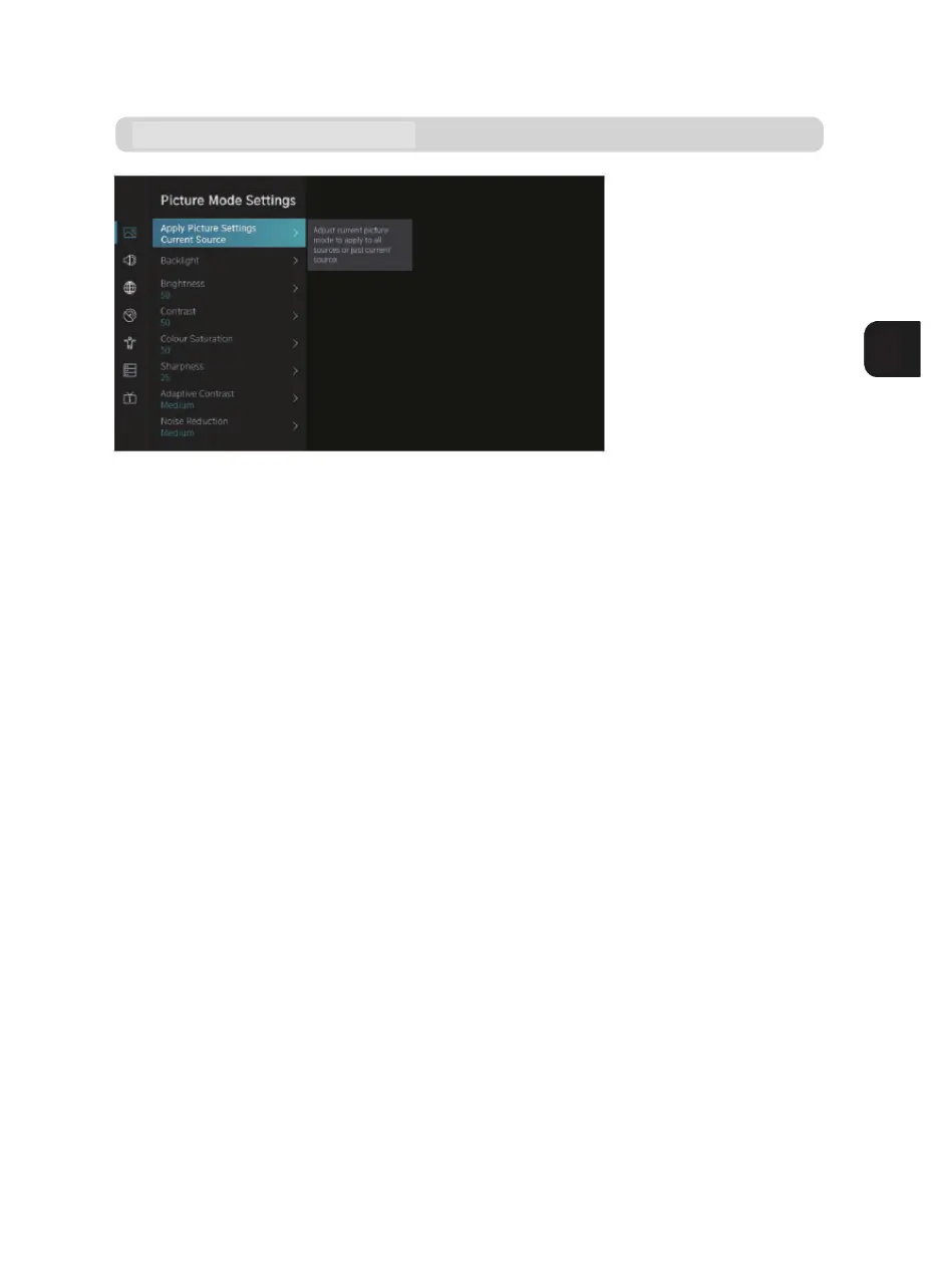 In questo menù, si regola la modalità immagine corrente per applicare la configurazione a tutte le sorgenti o