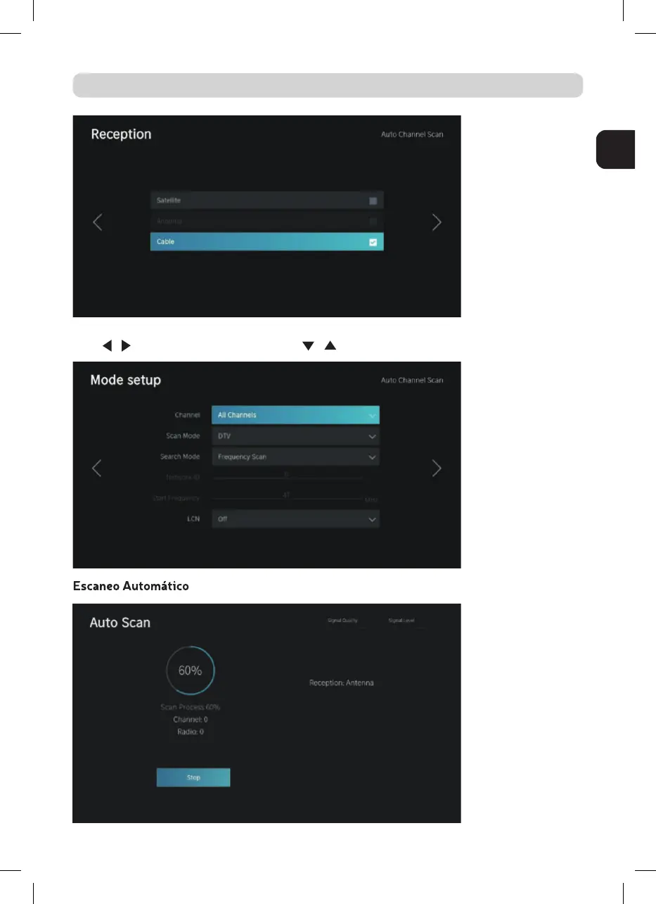 Pulse / para seleccionar Ajuste de modo y / para seleccionar Canal/Modo de escaneo/LCN.
